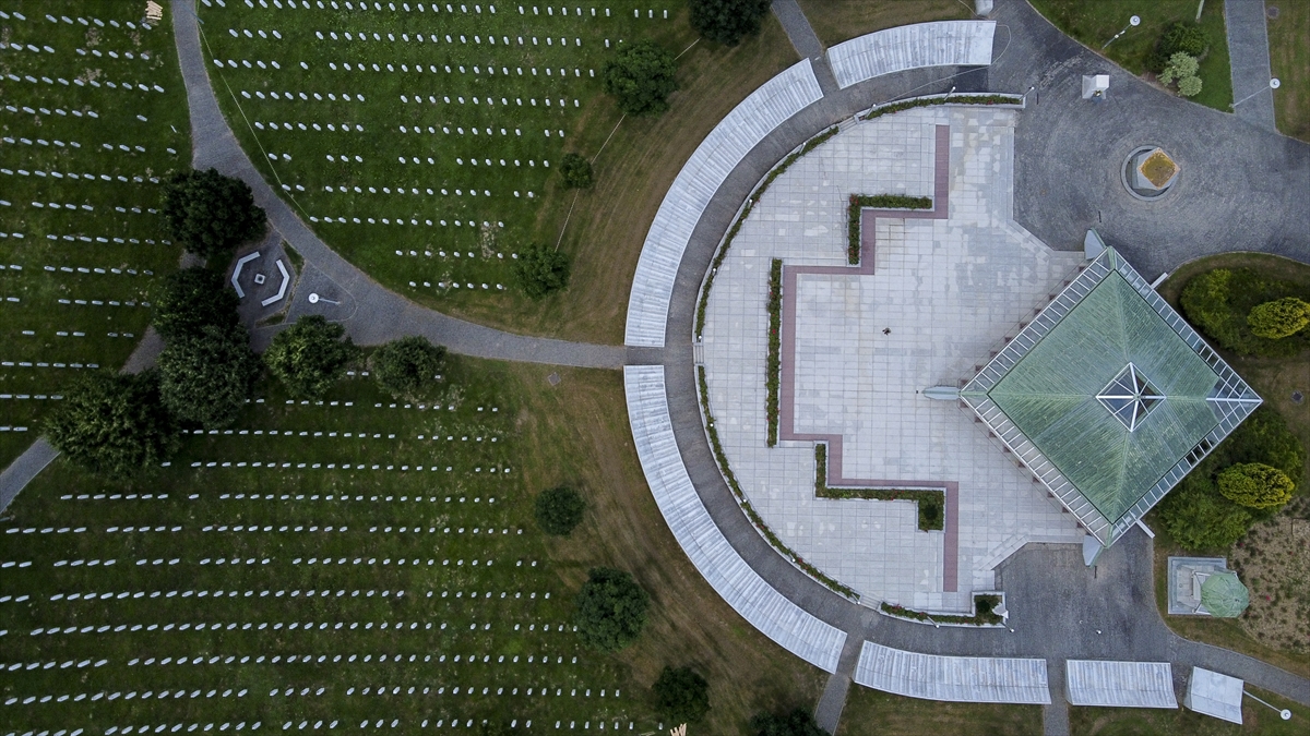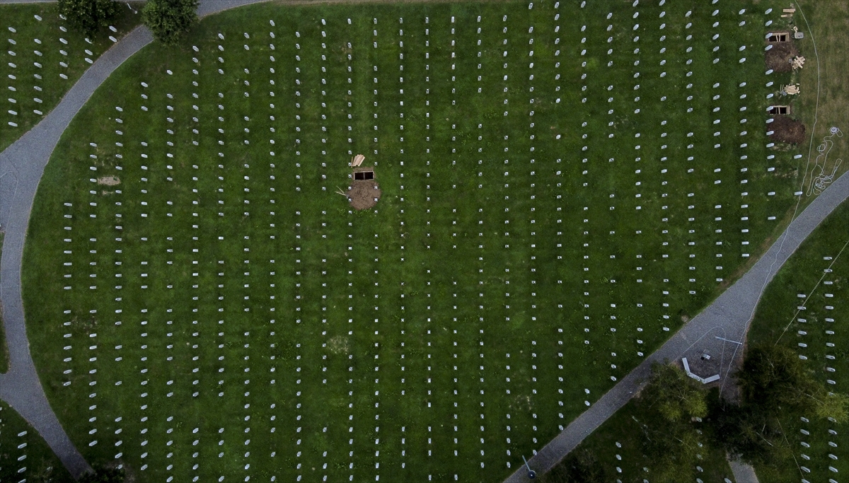 Bosna Hersek`in doğusundaki Srebrenitsa`da 1995`te Sırplar tarafından yapılan soykırımda öldürülen ve kimlikleri tespit edilen soykırım kurbanlarının defnedildiği Potoçari Anıt Mezarlığı havadan görüntülendi.