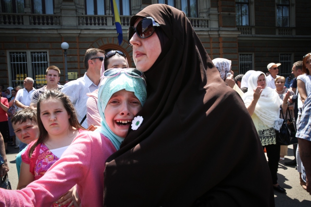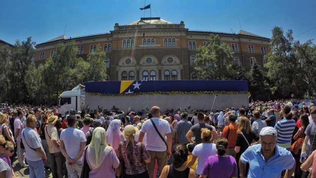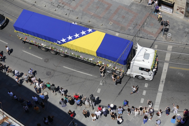 Srebrenitsa soykırımında hayatını kaybeden 127 kurbanın cenazelerini taşıyan tır konvoyu, başkent Saraybosna'ya gelerek Mareşal Tito Bulvarı'ndan Cumhurbaşkanlığı binasına ilerledi. Cenazeleri yolcu etmek için caddenin her iki tarafına dizilen binlerce vatandaş, tabutları gözyaşlarıyla uğurladı.