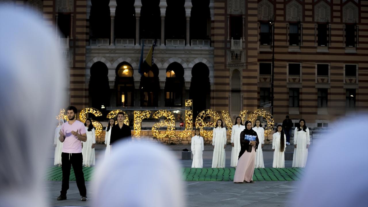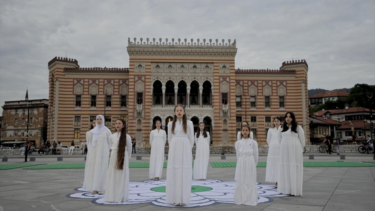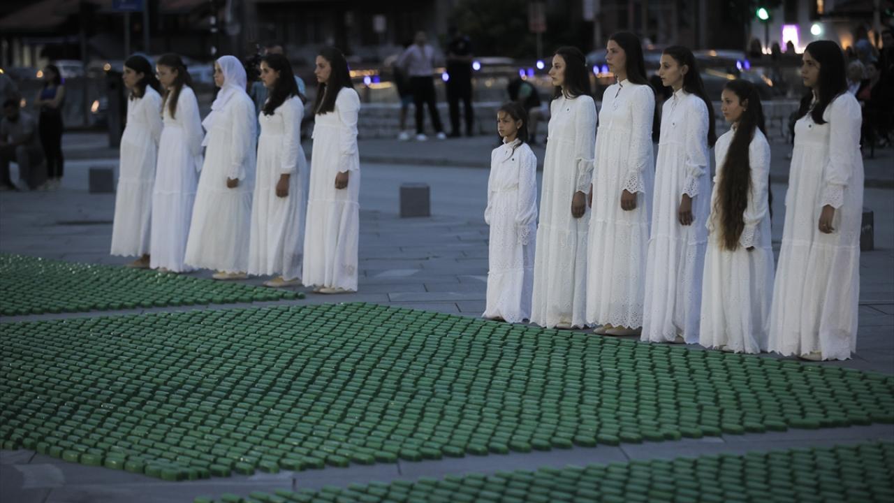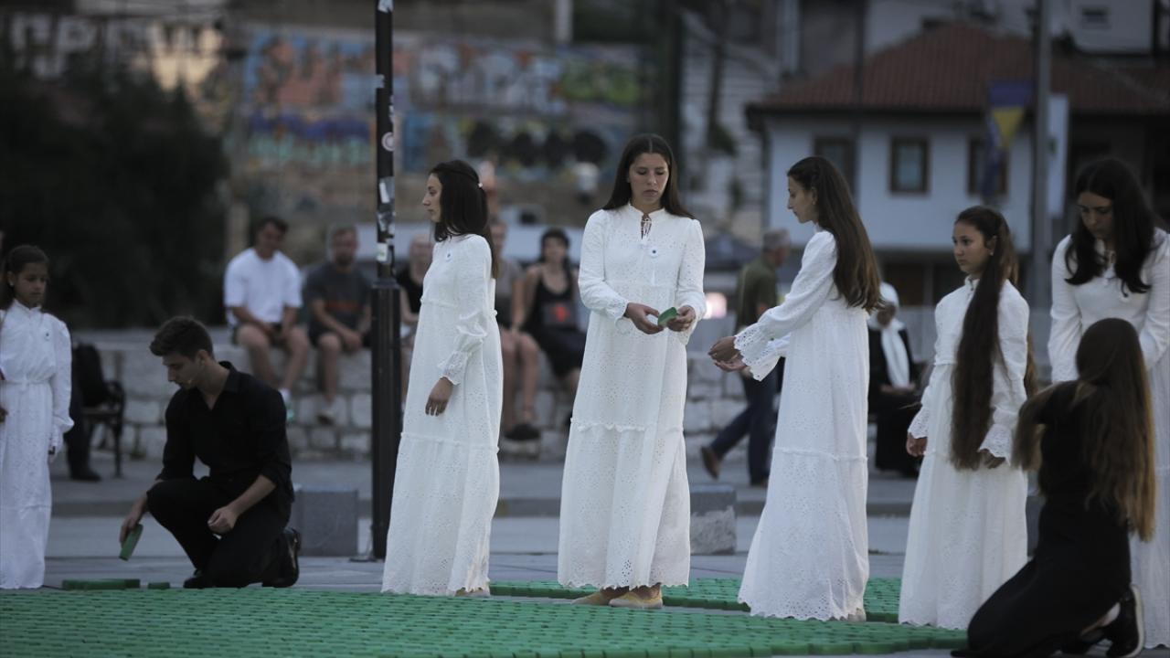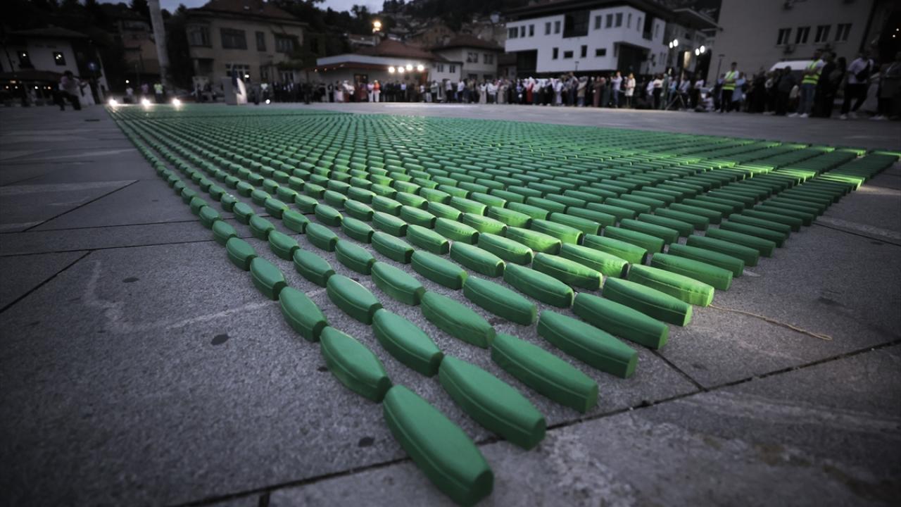 Tarihi Vijecnica Kütüphanesi önünde, Adresim Srebrenitsa Derneği tarafından Saraybosna Belediyesi katkılarıyla düzenlenen programda soykırımda hayatını kaybeden 8 bin 372 Boşnak sivili temsilen küçük tabutlar kurulurken Tuzla Sanat Akademisi öğrencileri ile Srebrenitsalı çocuklar performans sergiledi.