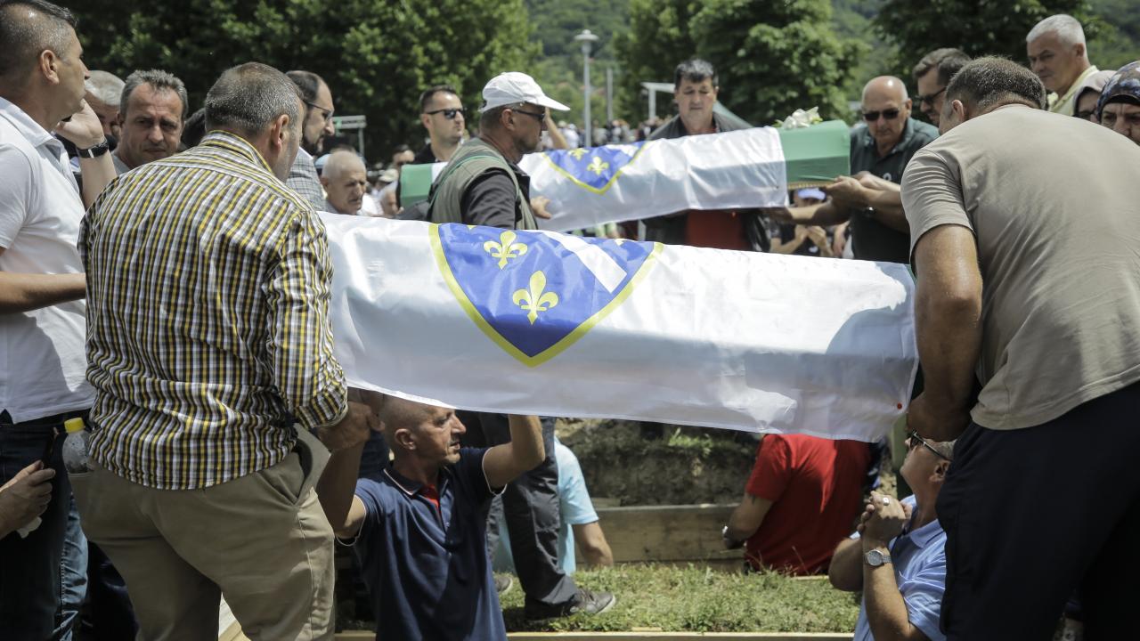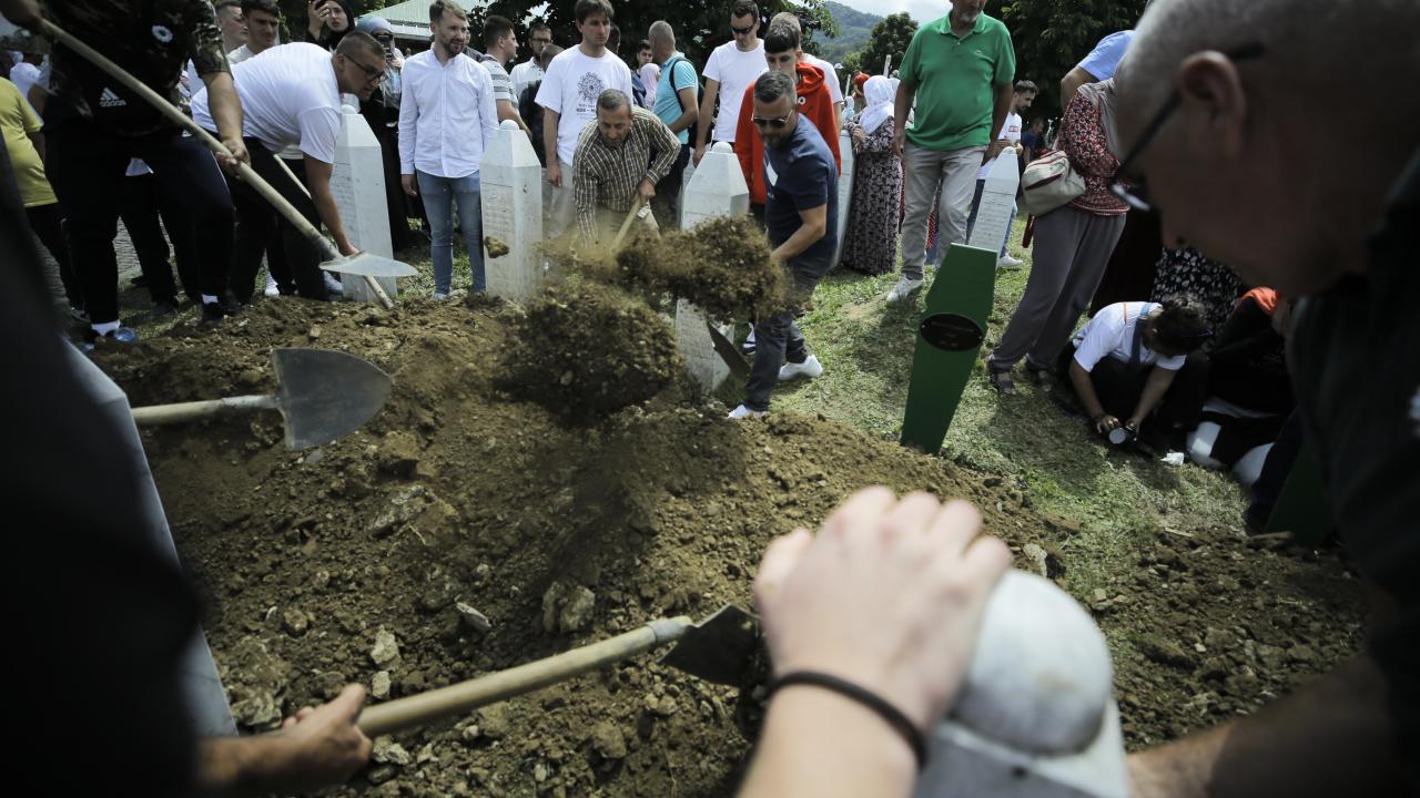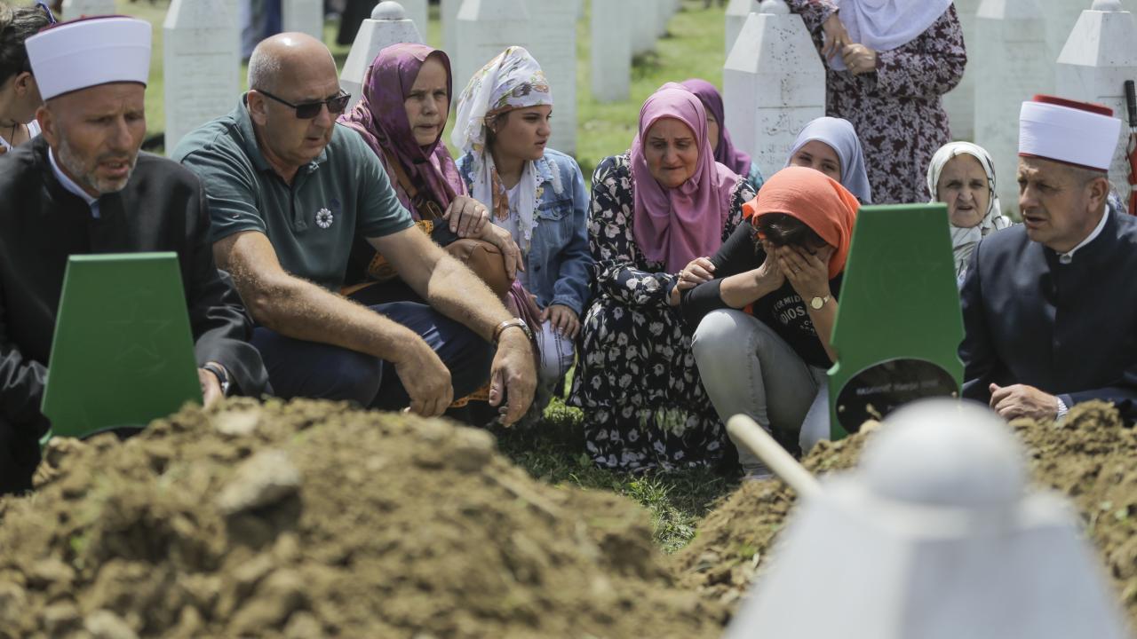 Aralarında 3 reşit olmayan erkek çocuğun bulunduğu soykırım kurbanlarının defnedilmesi sırasında duygusal anlar yaşandı.