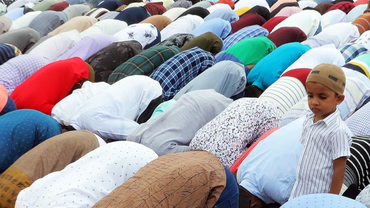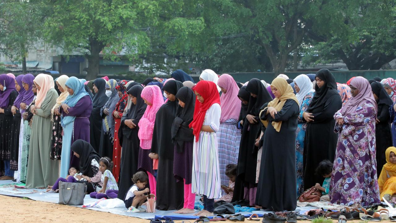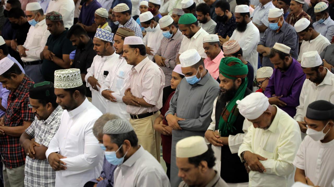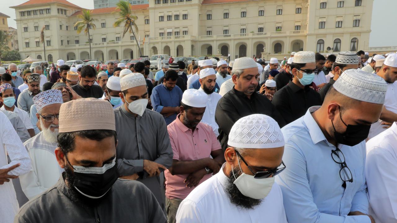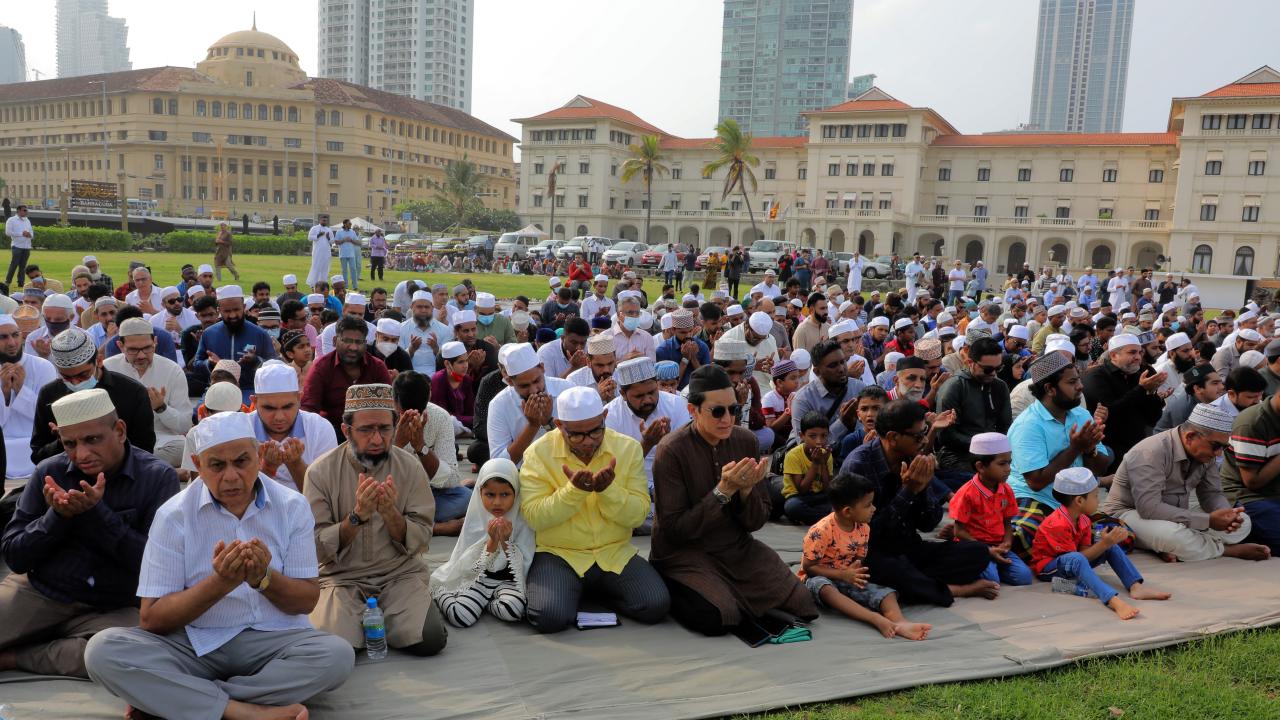 Sri Lanka'nın başkenti Kolombo'da yaşayan Müslümanlar, Ramazan Bayramı sabahında bayram namazını kılmak için Galle Face Green parkında bir araya geldi.