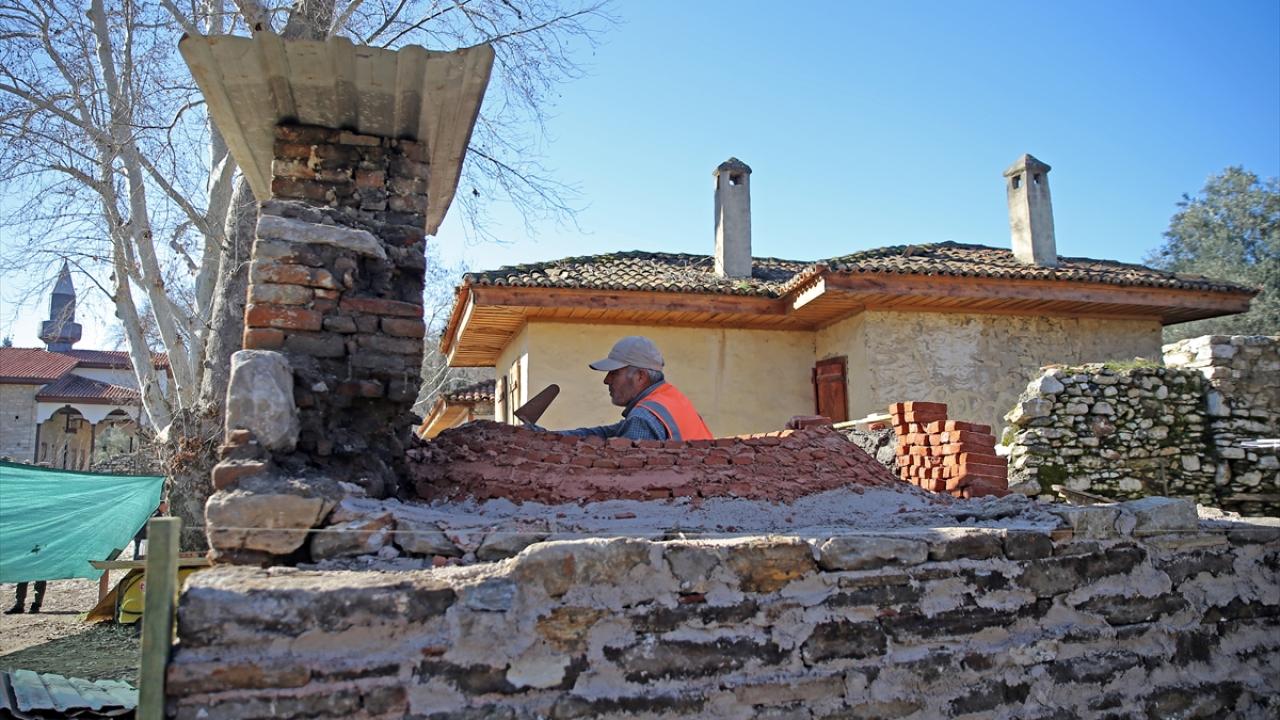 Muğla'nın Yatağan ilçesinde UNESCO Dünya Mirası Geçici Listesi'nde yer alan Stratonikeia Antik Kenti'nin girişinde bulunan ve köy meydanını oluşturan yapılar, Geleceğe Miras Projesi kapsamında restore edilerek ayağa kaldırılıyor.