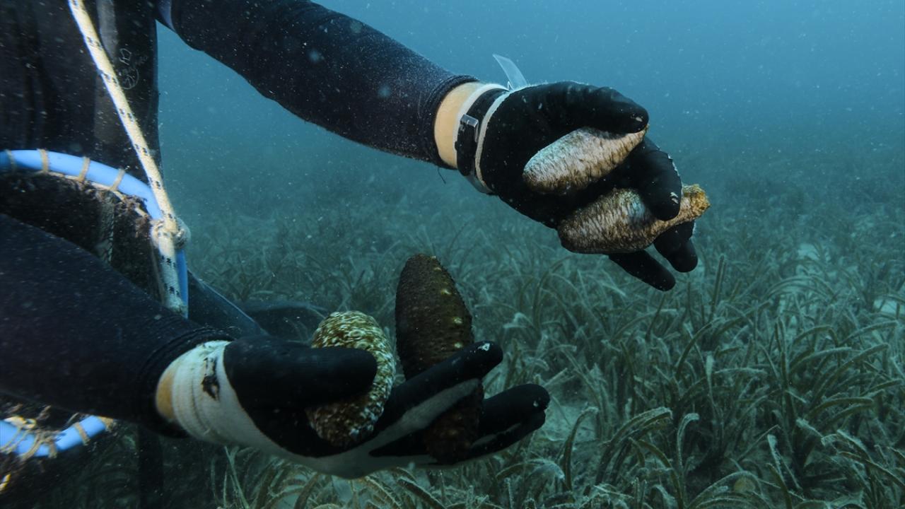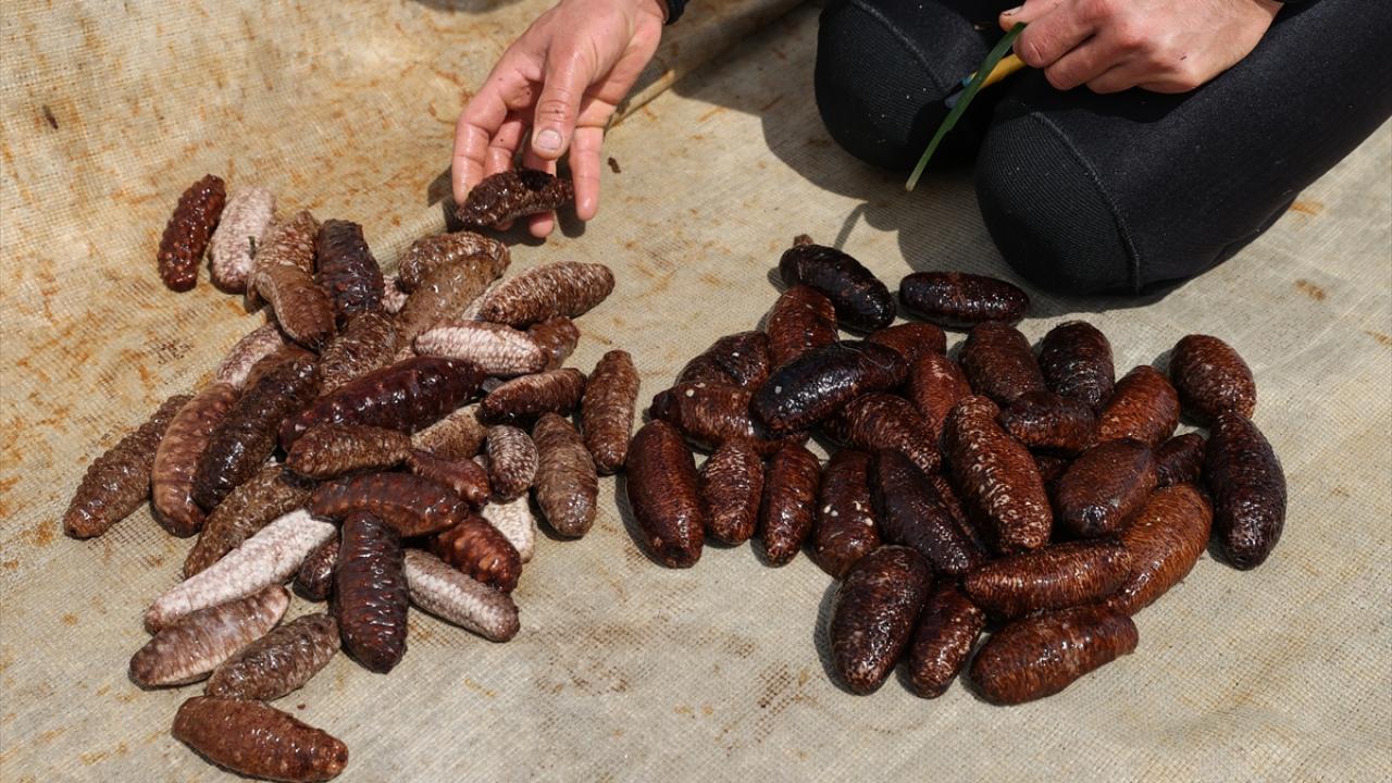 Türkiye'de tüketilmese de özellikle Uzak Doğu mutfak kültürünün ilginç lezzetlerinden deniz patlıcanı, Ege'nin mavi sularında metrelerce derinde çalışan dalgıçların zorlu mesaisiyle ülkeye döviz kazandırıyor.
