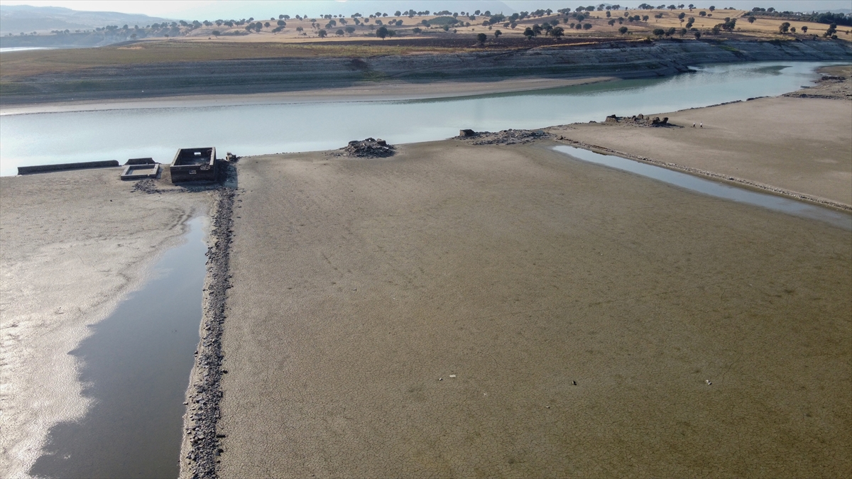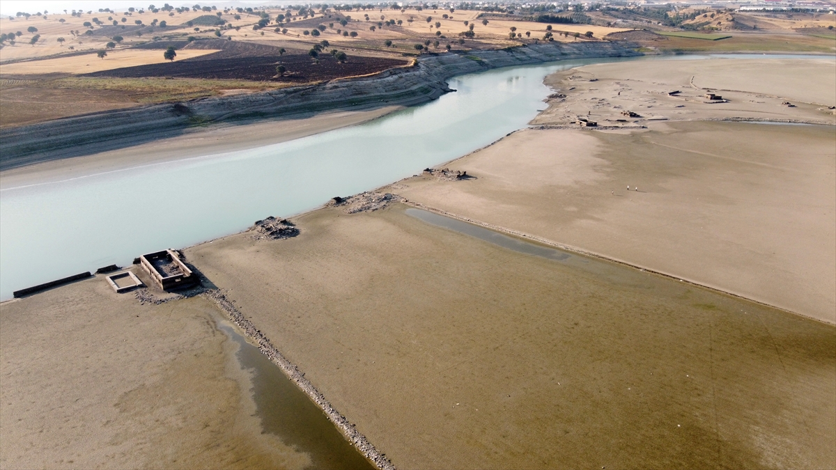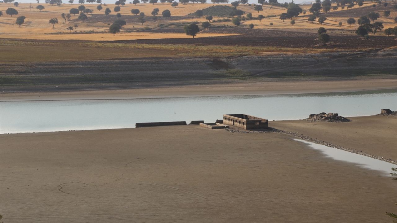Su altında kalan köy, kurak geçen yılın ardından akarsu ve barajlardaki suyun çekilmesiyle yeniden görünür hale geldi.