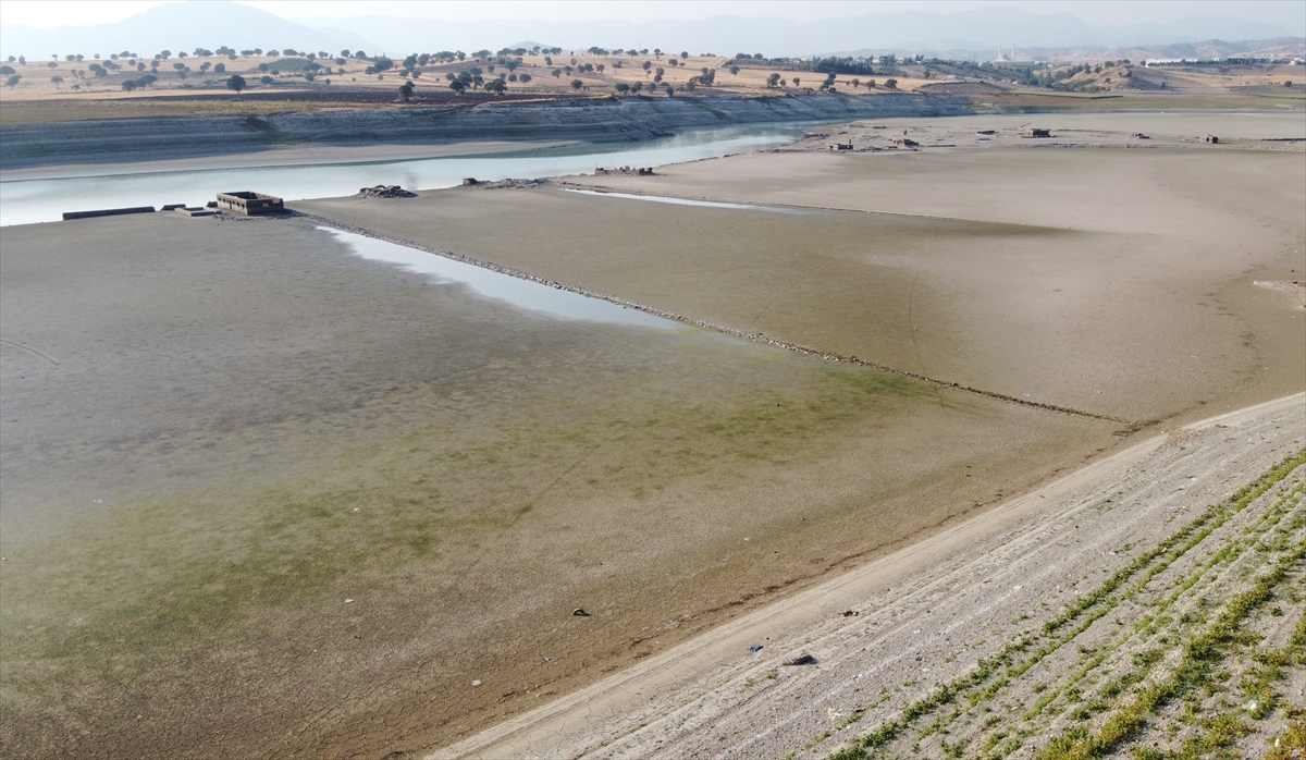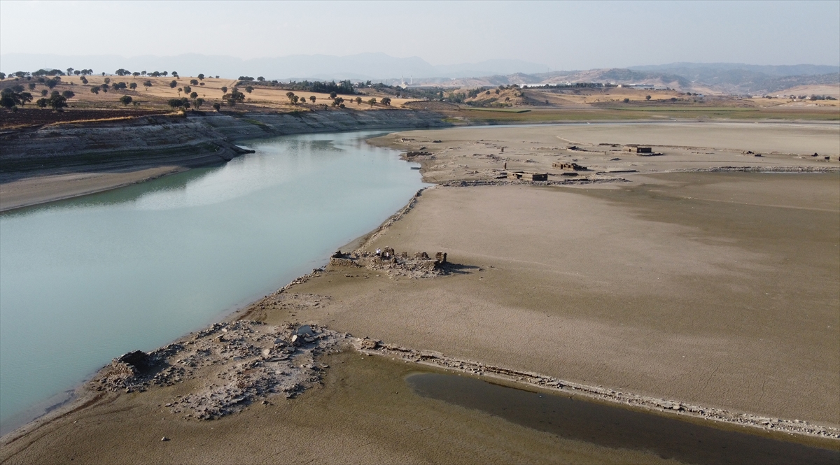 Kahramanmaraş'ta akarsu ve barajlardaki suyun çekilmesiyle, 29 yıl önce su altında kalan köy tekrar gün yüzüne çıktı.