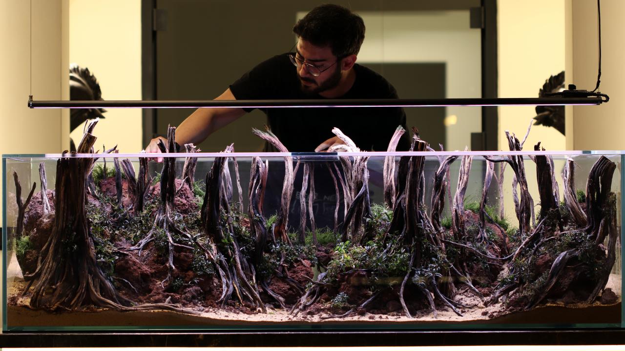 Su altı manzara sanatçısı ve kreatör Mert Yılmaz, su altının renkli ve bir o kadar da çekici dünyasını tabloyu andıran peyzajla akvaryuma sığdırıyor.