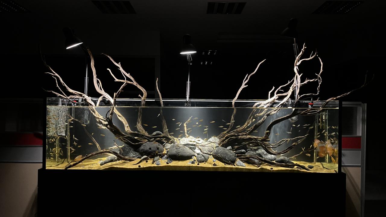 Kaya, kök, kütük, sucul bitkiler, kum ve balıkları kullanarak ortaya koyduğu sanatının inceliklerini anlatan Yılmaz, su altında bulunan malzemeleri akvaryumun içinde ahenkle buluşturan bir sanat icra ettiğini söyledi.
