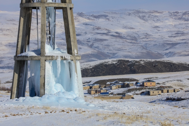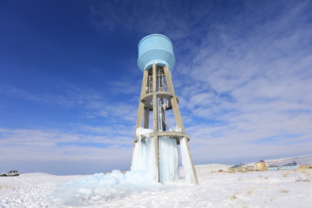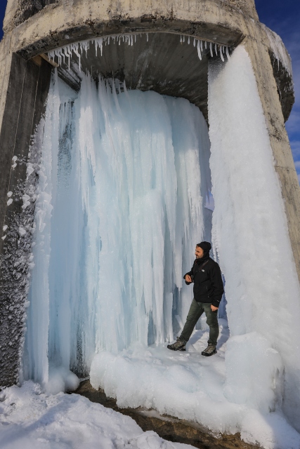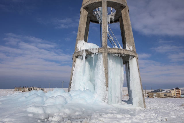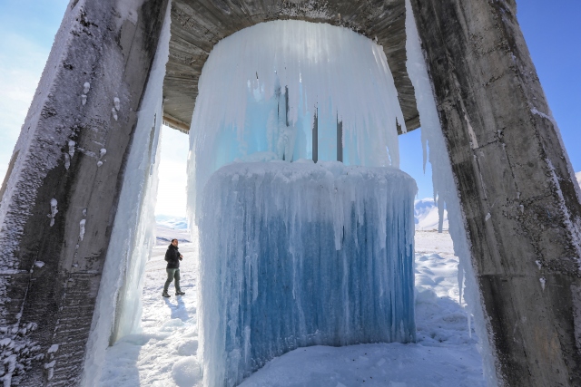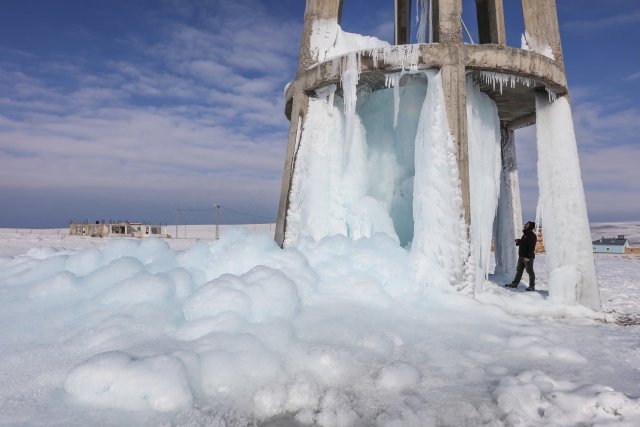 Doğu Anadolu Bölgesi'nde etkili olan soğuk hava, yaşamı olumsuz etkiliyor. Van'da dondurucu soğukların etkisiyle zarar gören su deposundan sızan suyun donması, ilginç görüntünün ortaya çıkmasına neden oldu.