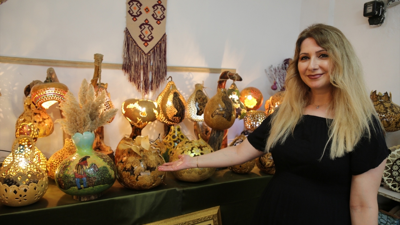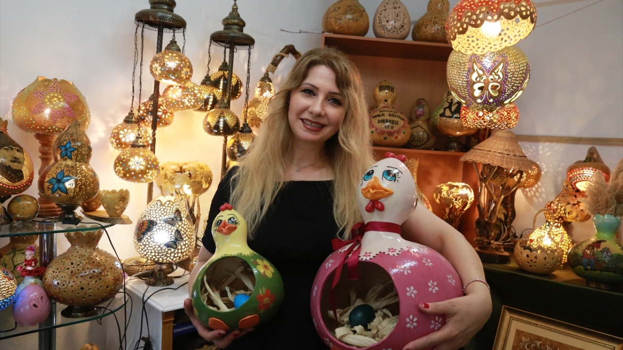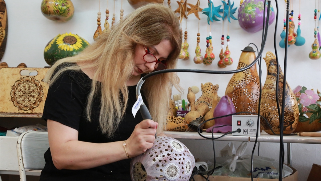 Artvin'in Arhavi ilçesinde yaşayan ev hanımı Necla Hekimoğlu Altanlar, su kabağını çeşitli dekoratif eşyalara dönüştürerek hem aile bütçesine katkı sağlıyor hem de sanatını icra etmenin mutluluğunu yaşıyor.