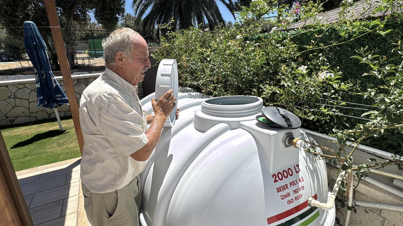 Çeşme ilçesi Cumhuriyet Mahallesi`nde yaşayan 62 yaşındaki Ahmet Yurt da evinin bahçesine 10 yıl önce su deposu kurdurduğunu, bu yılki su kesintileri nedeniyle 2 bin litrelik yeni bir depo daha yaptırdığını söyledi.