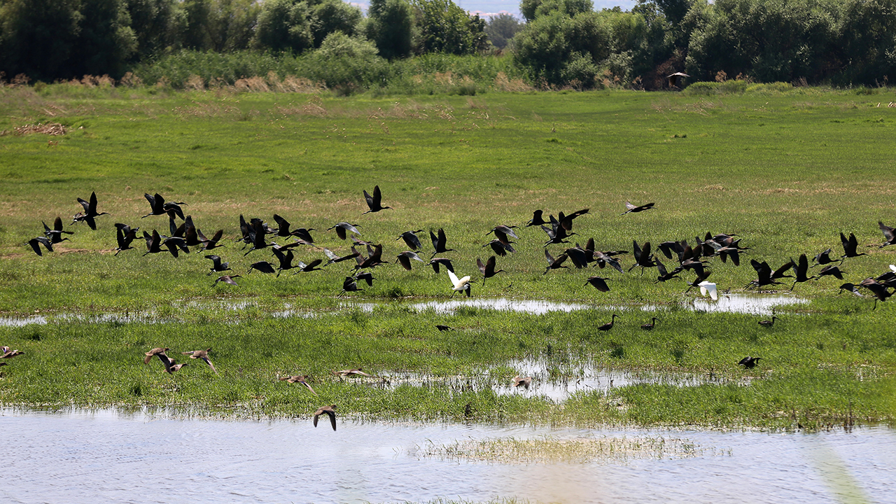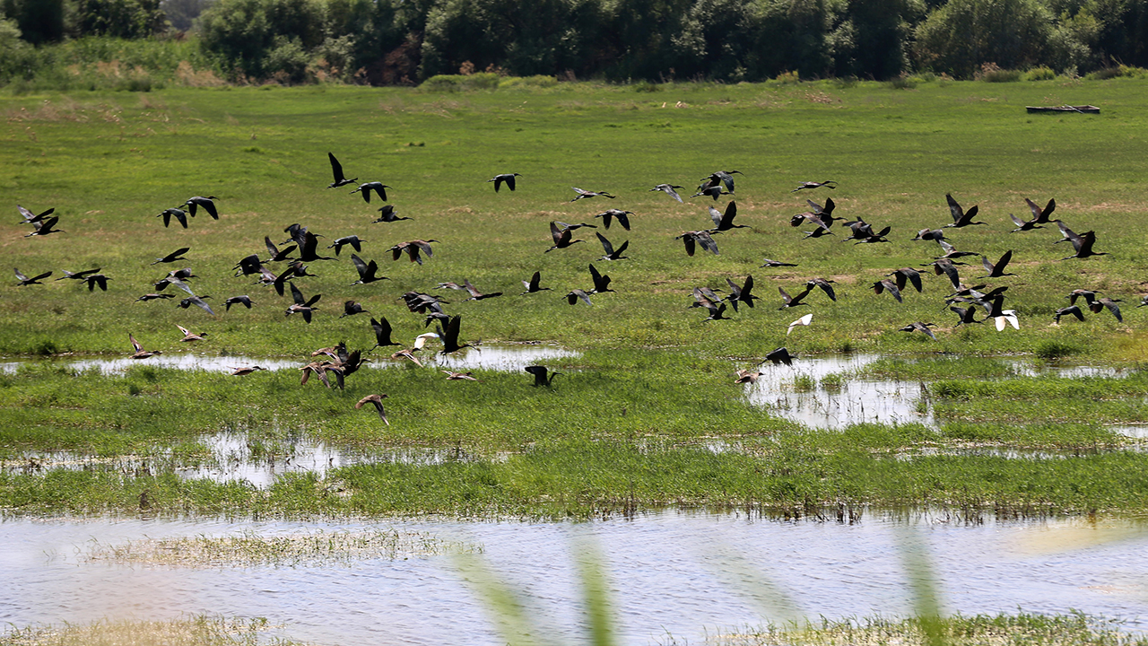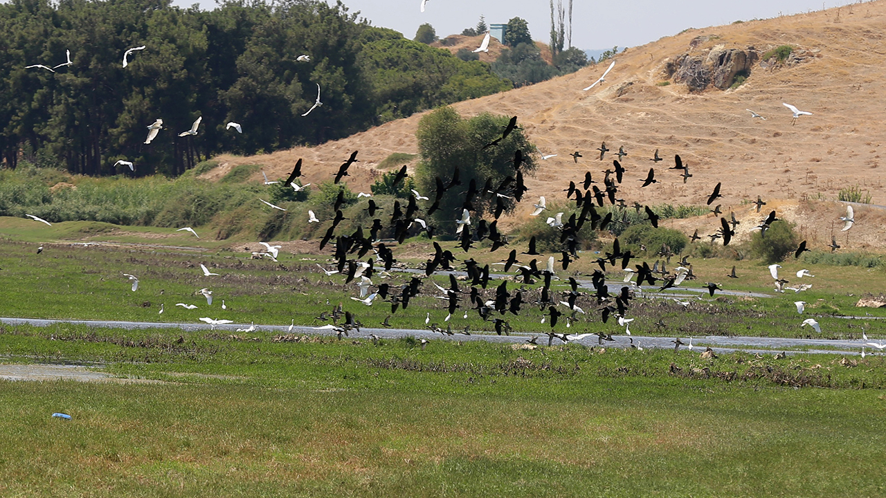 Manisa'daki Marmara Gölü'nün kurumasının ardından çevredeki su kuşlarının yeni durağı, bölgeye yakın Devlet Su İşleri (DSİ) regülatörünün doldurduğu sulak alan oldu.