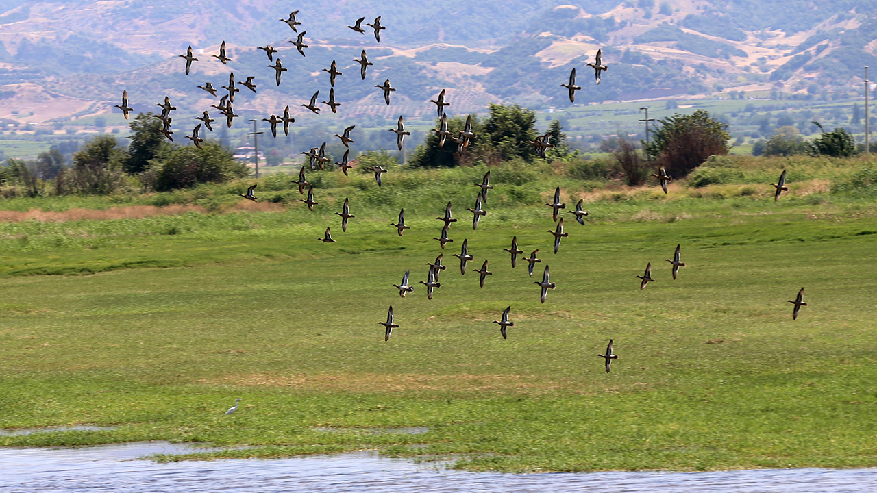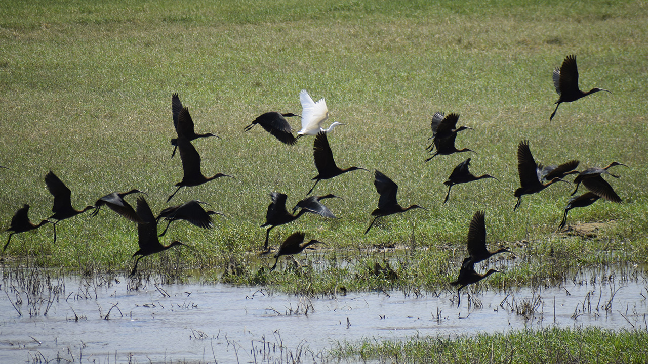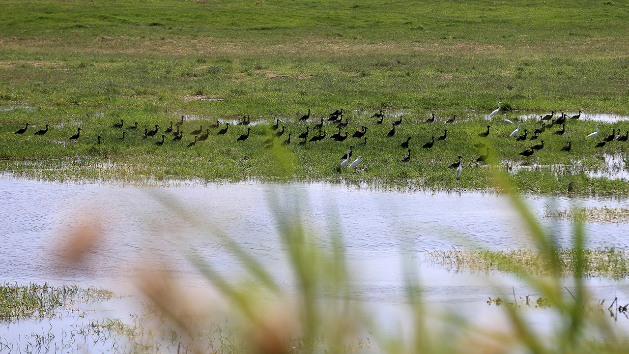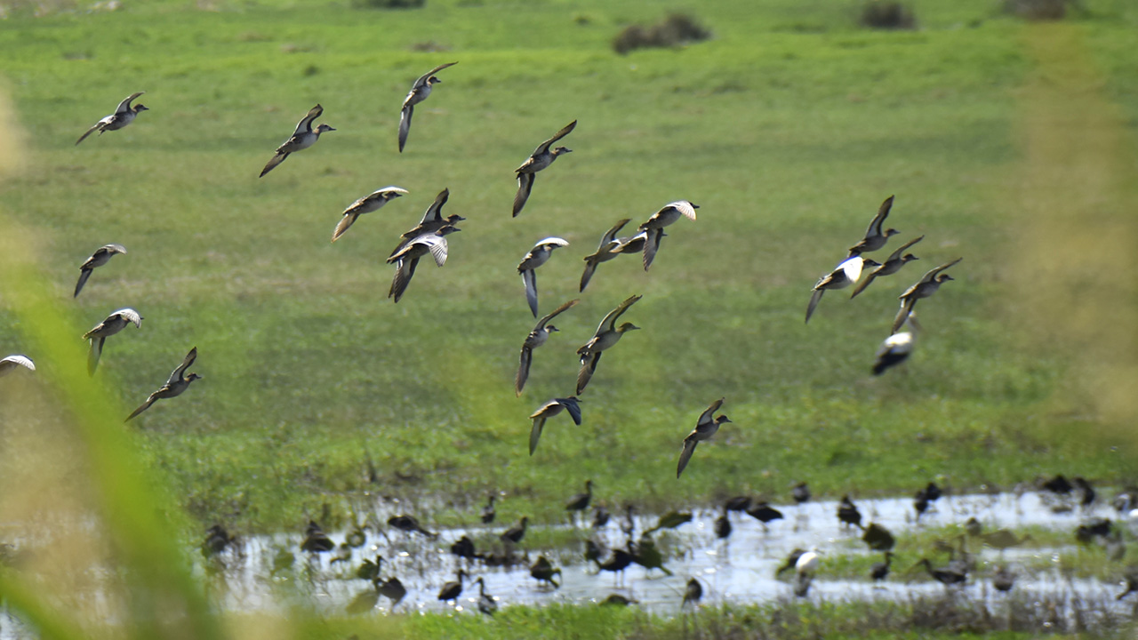 Manisa'daki Marmara Gölü'nün kurumasının ardından çevredeki su kuşlarının yeni durağı, bölgeye yakın Devlet Su İşleri (DSİ) regülatörünün doldurduğu sulak alan oldu.