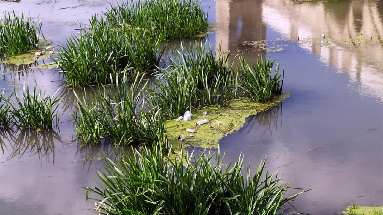 Daha önce su yüzeyini kaplayan su mercimeklerinin yerini bu ot öbekleri aldı.