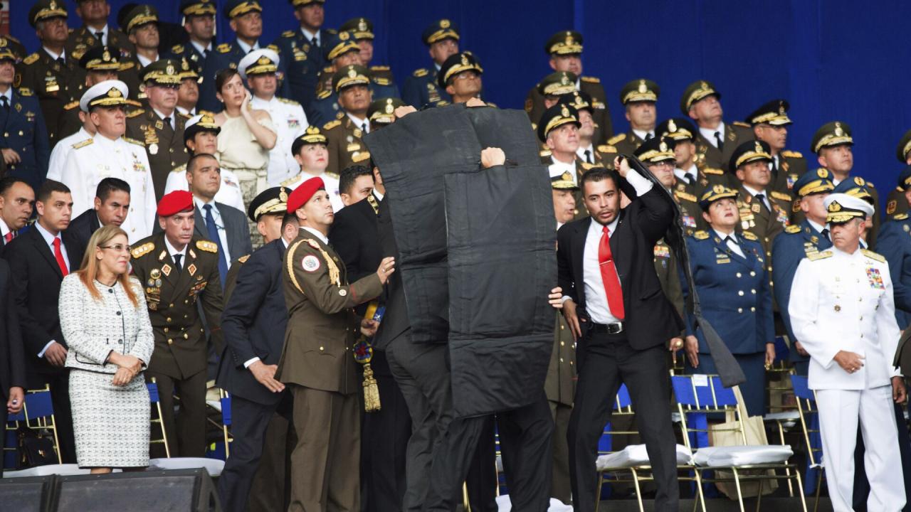 Nicolas Maduro Venezuela Devlet Başkanı Nicolas Maduro`ya törende konuşma yaptığı sırada bomba yüklü drone ile saldırı düzenlendi, saldırıda Maduro yaralanmadı.