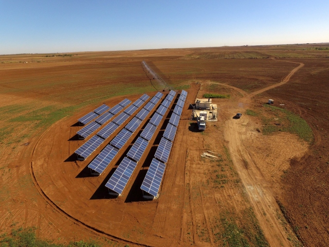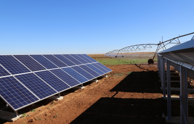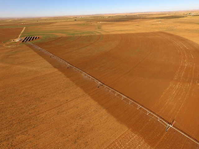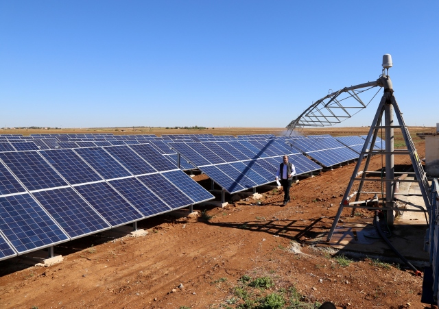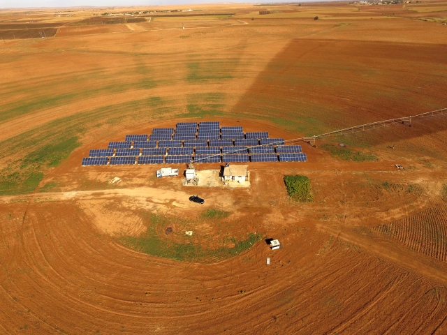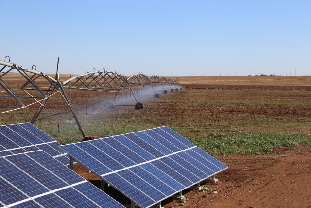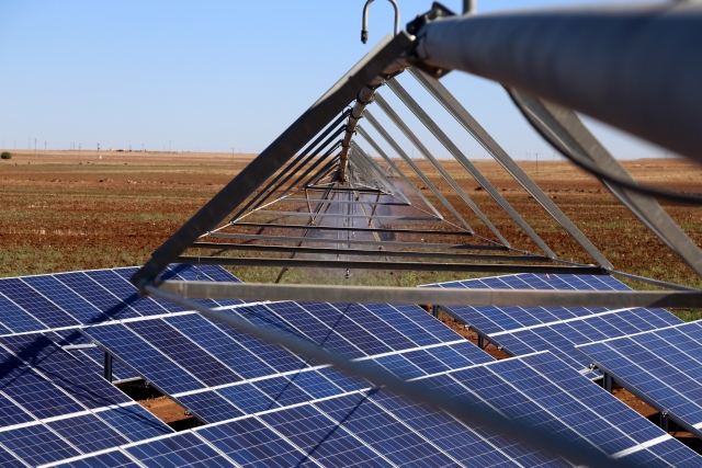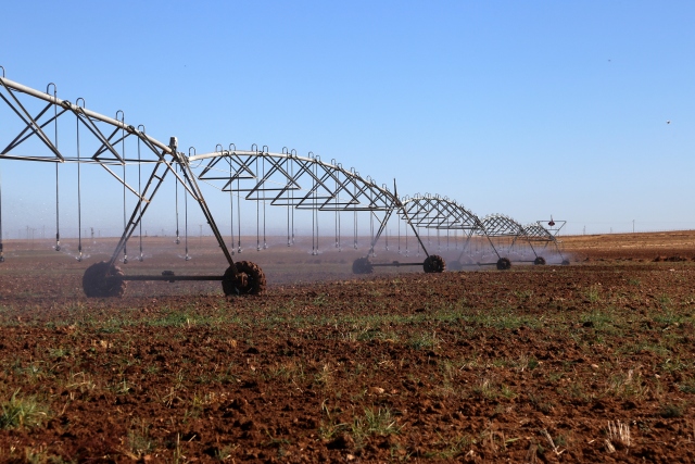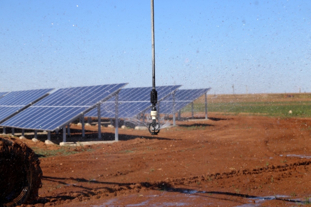 Şanlıurfa'da, Güneydoğu Anadolu Projesi Tarımsal Araştırma Enstitüsü Müdürlüğünce (GAPTAEM) geliştirilen güneş enerjisiyle çalışan center pivot sulama sistemiyle, 500 dekar alan sulanmaya başlandı.