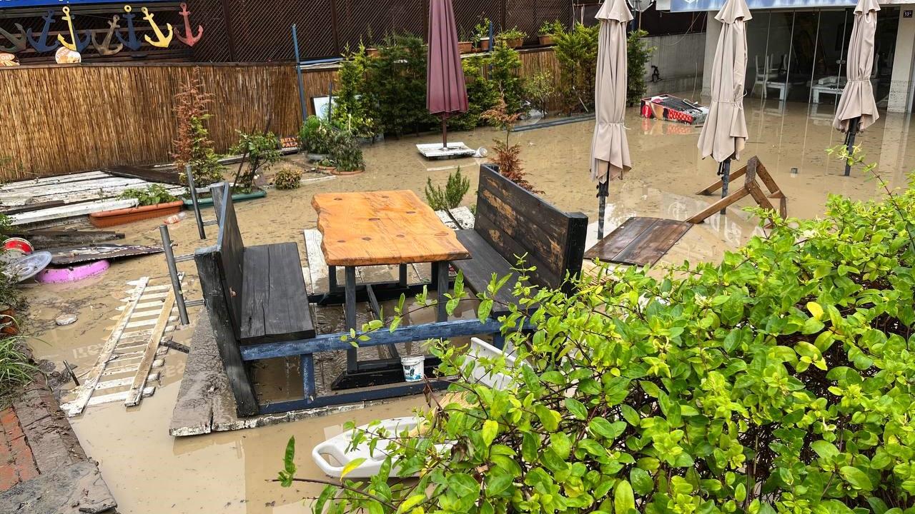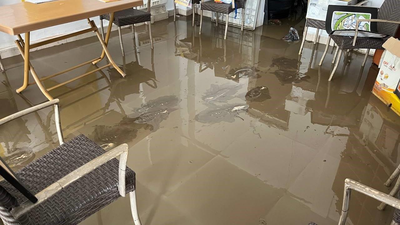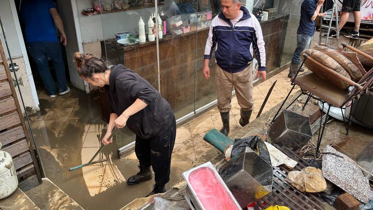 İş yerleri çamur içerisinde kalan esnaflar temizlik çalışması başlattı.