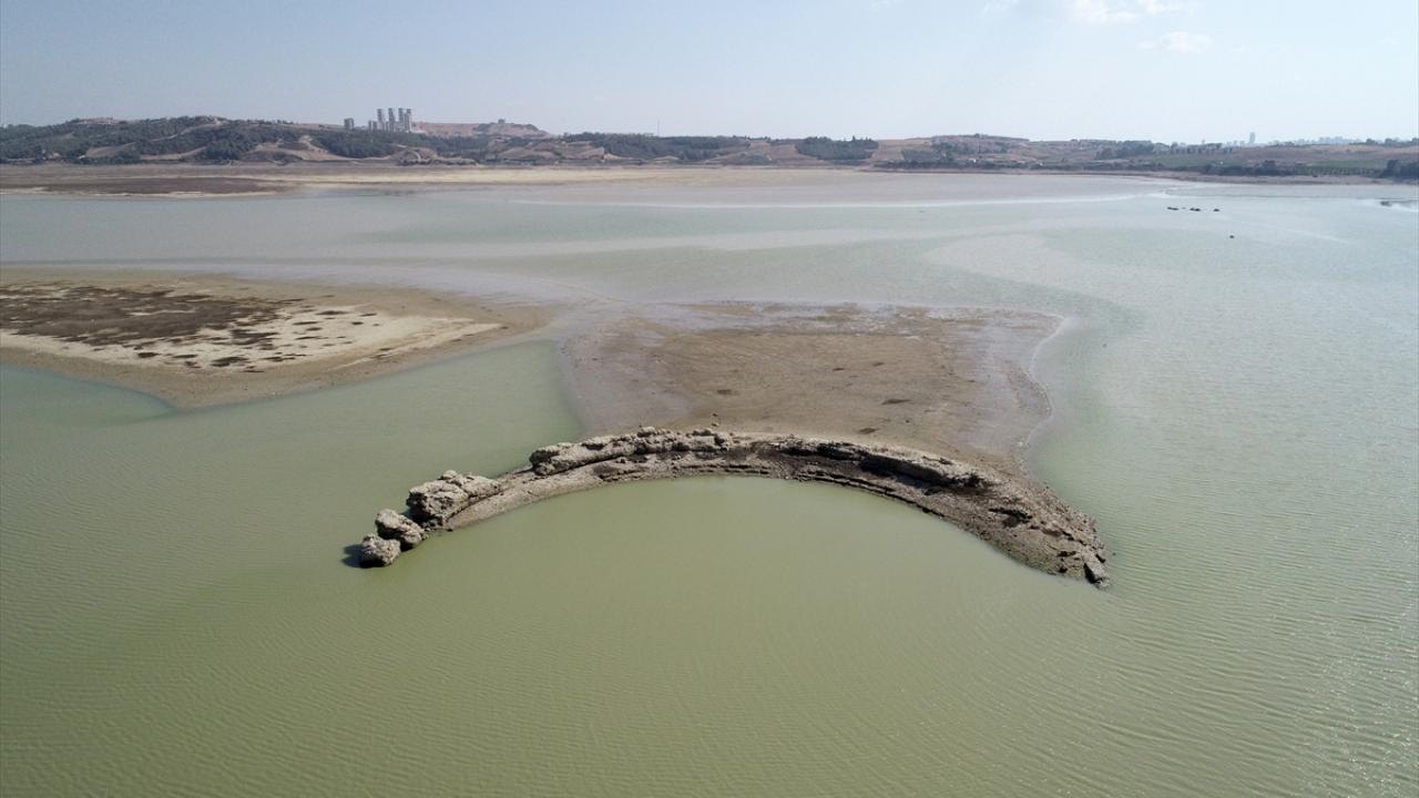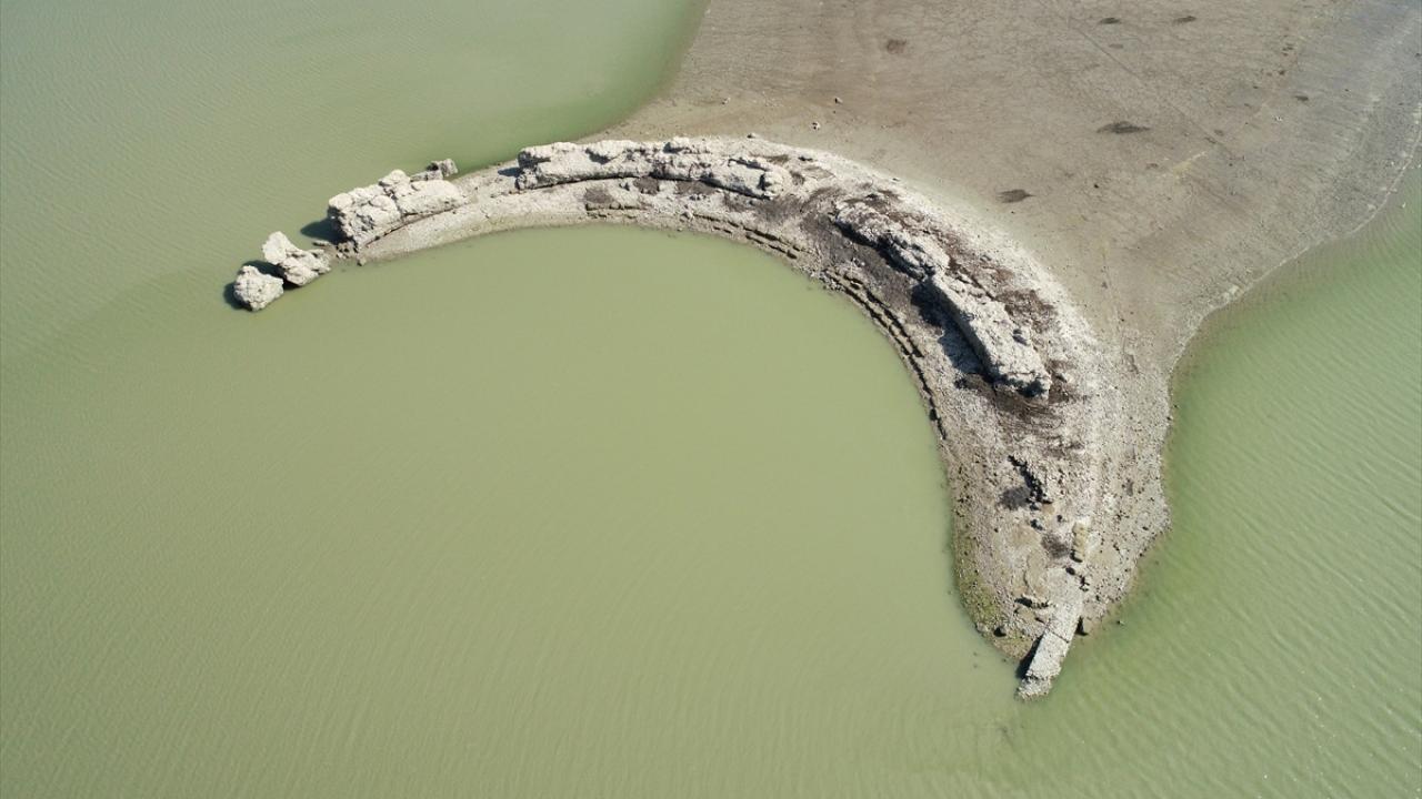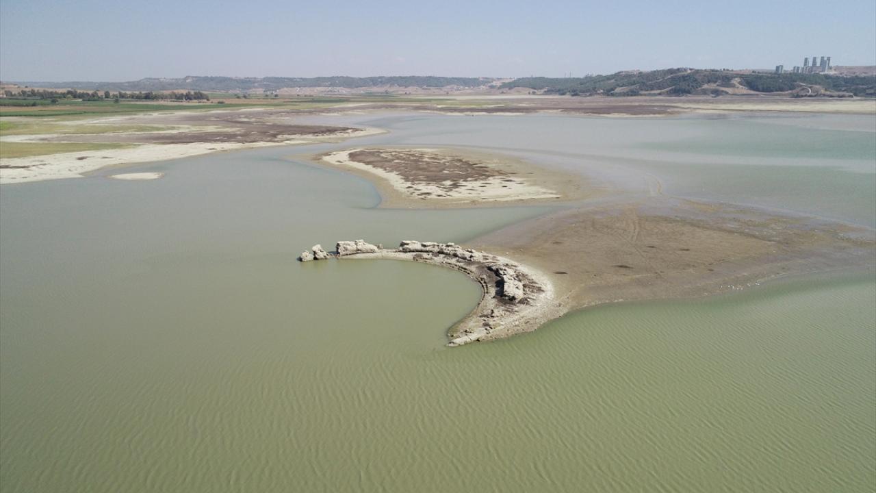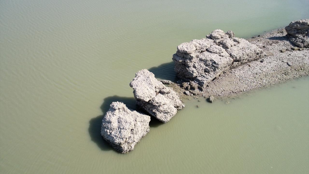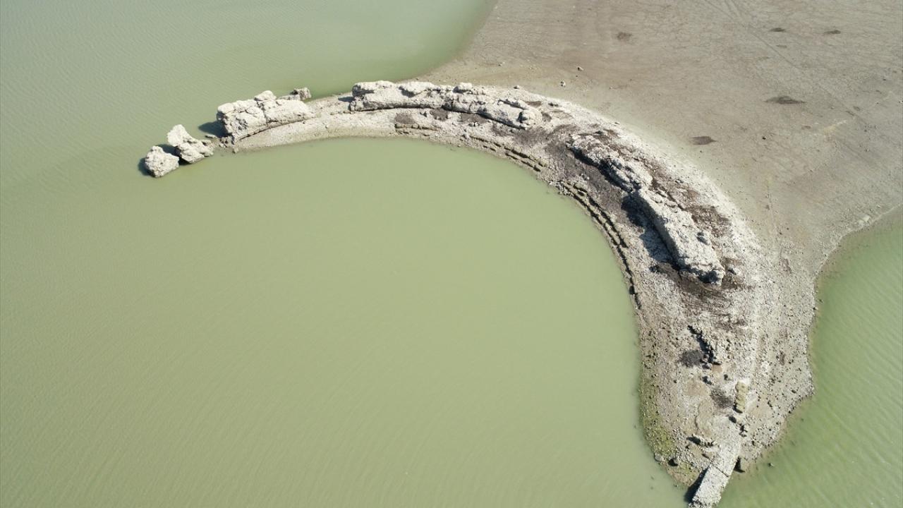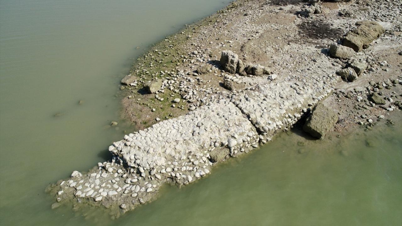 Merkez Sarıçam ilçesi Karaömerli Mahallesi`nde yakın bir noktada bulunan antik kentin bir bölümü, gölde su seviyesinin düşmesiyle görünür hale geldi.