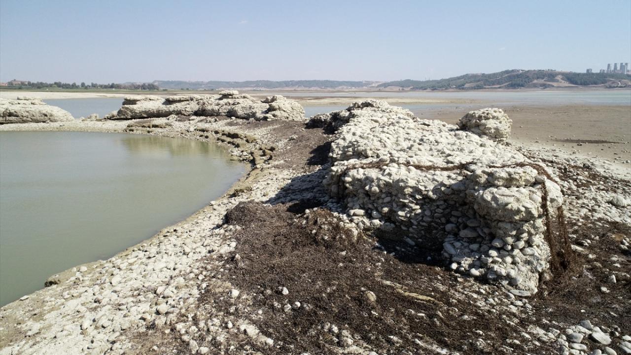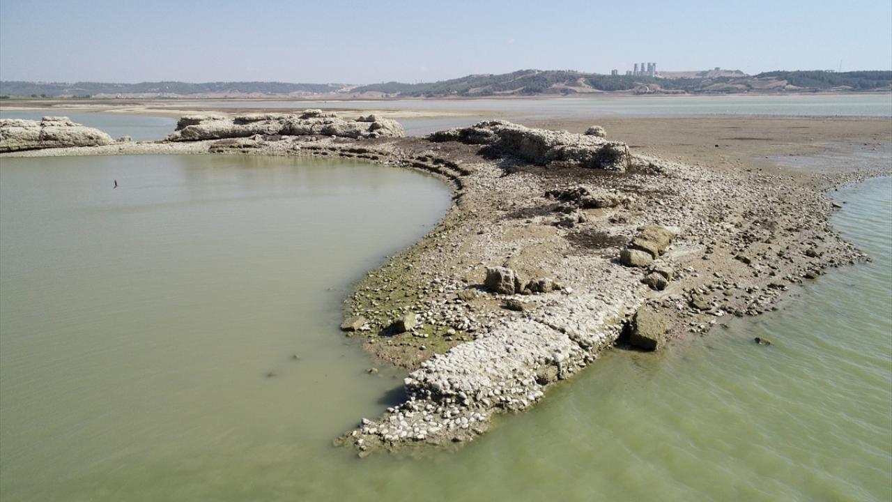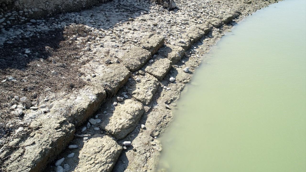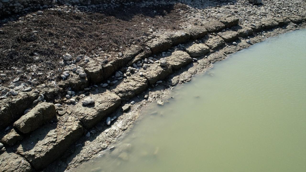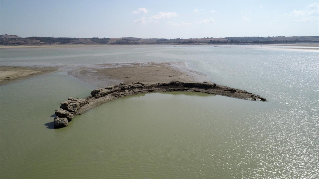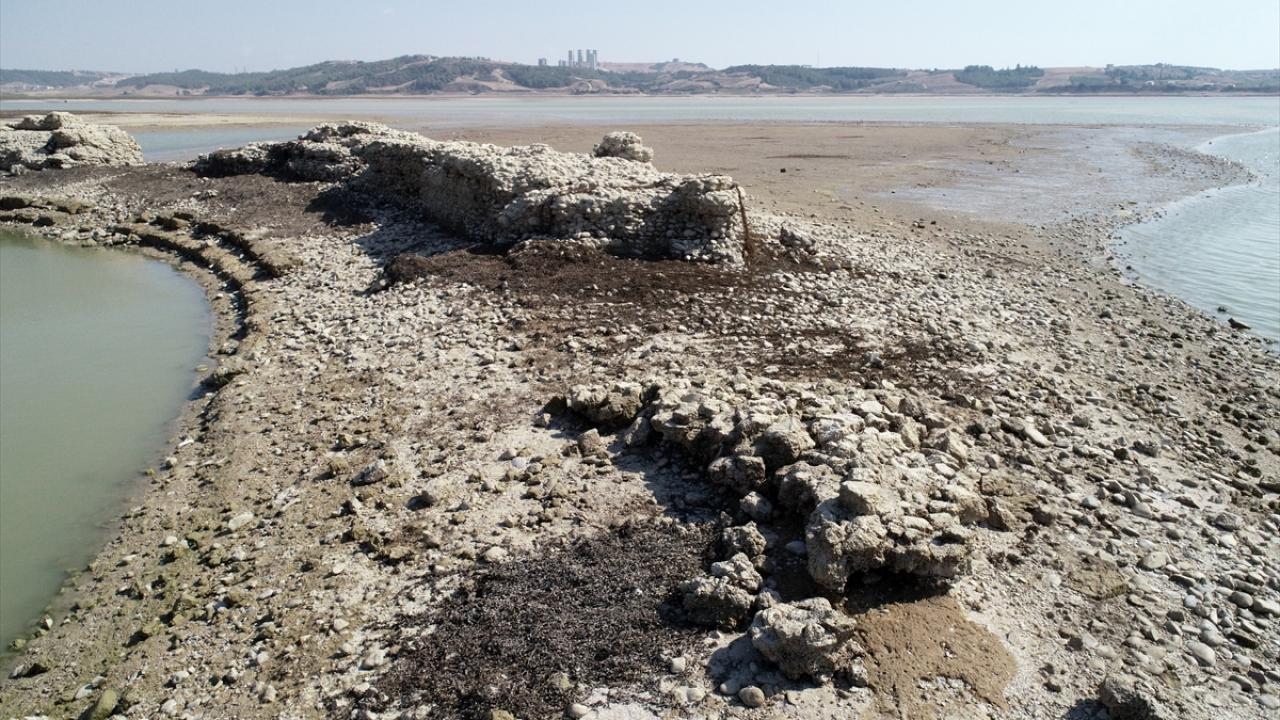 Merkez Sarıçam ilçesi Karaömerli Mahallesi`nde yakın bir noktada bulunan antik kentin bir bölümü, gölde su seviyesinin düşmesiyle görünür hale geldi.