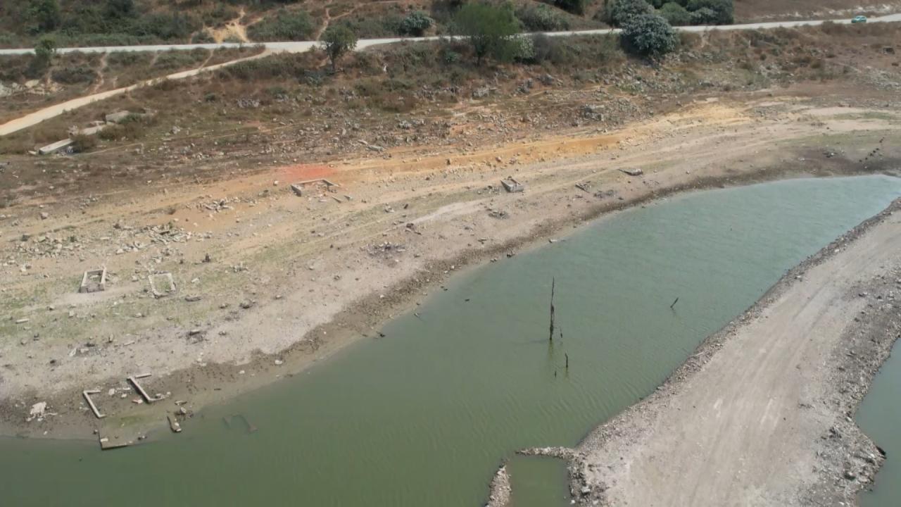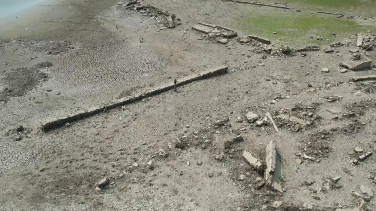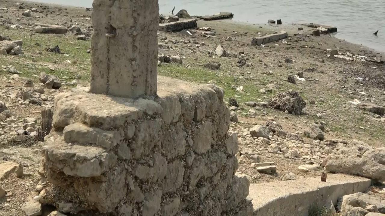 Suyun çekilmesiyle, yüzyıllar öncesinde yapılmış tarihi mezarlığın giriş kapısı, çevresinde örtülü olan duvarlar ve içeride bulunan onlarca mezarlık görüldü.