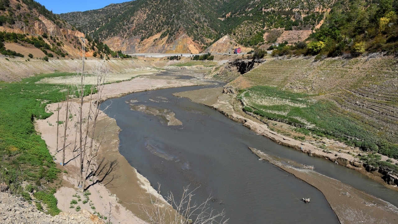 Gümüşhane'de elektrik üretimi için kurulan Torul Barajı'nın suları altında kalan tarihi Torul Köprüsü, su seviyesinin azalması sonucu yeniden ortaya çıktı.
