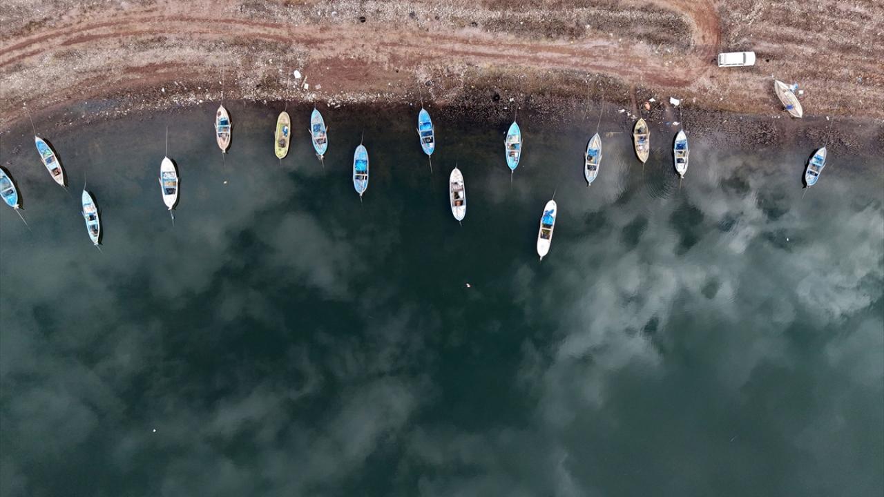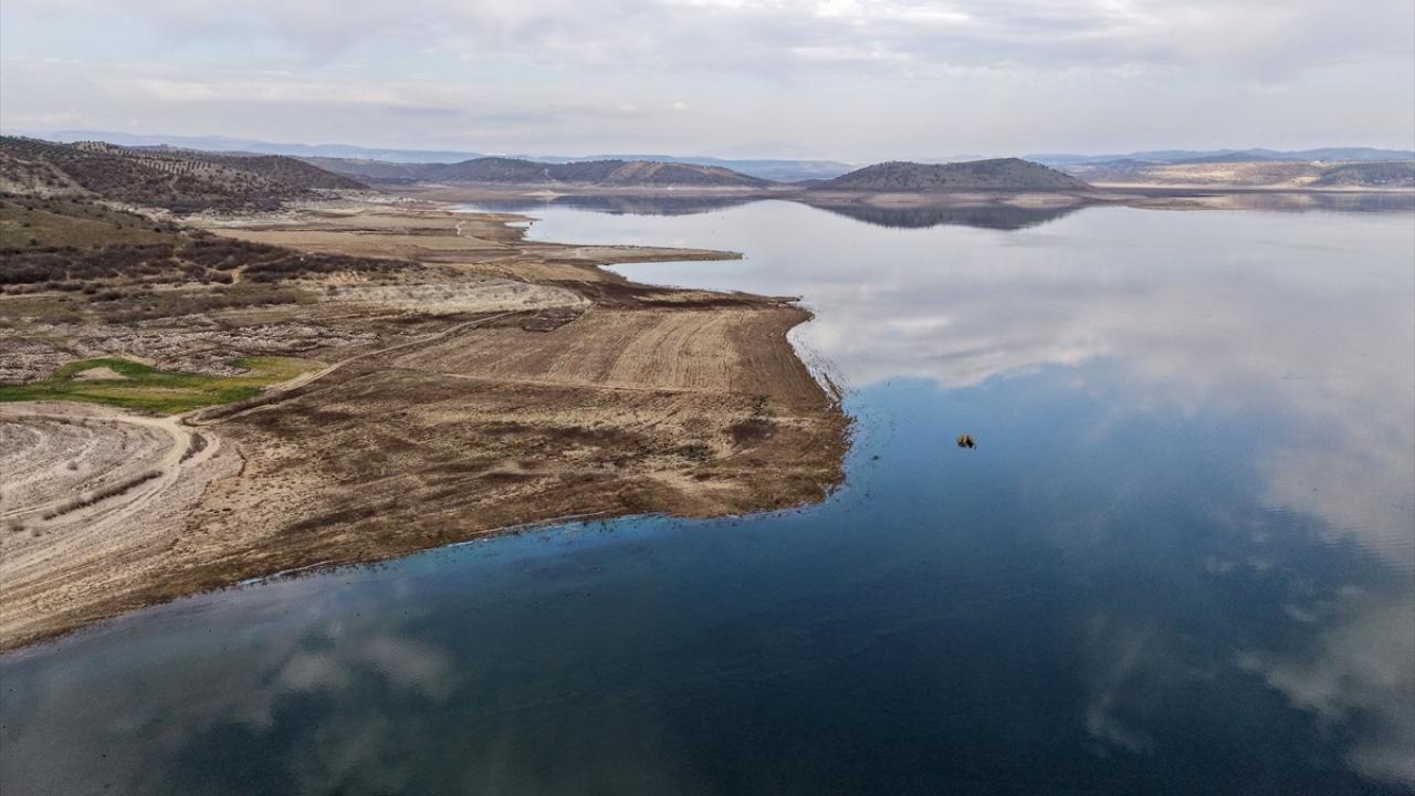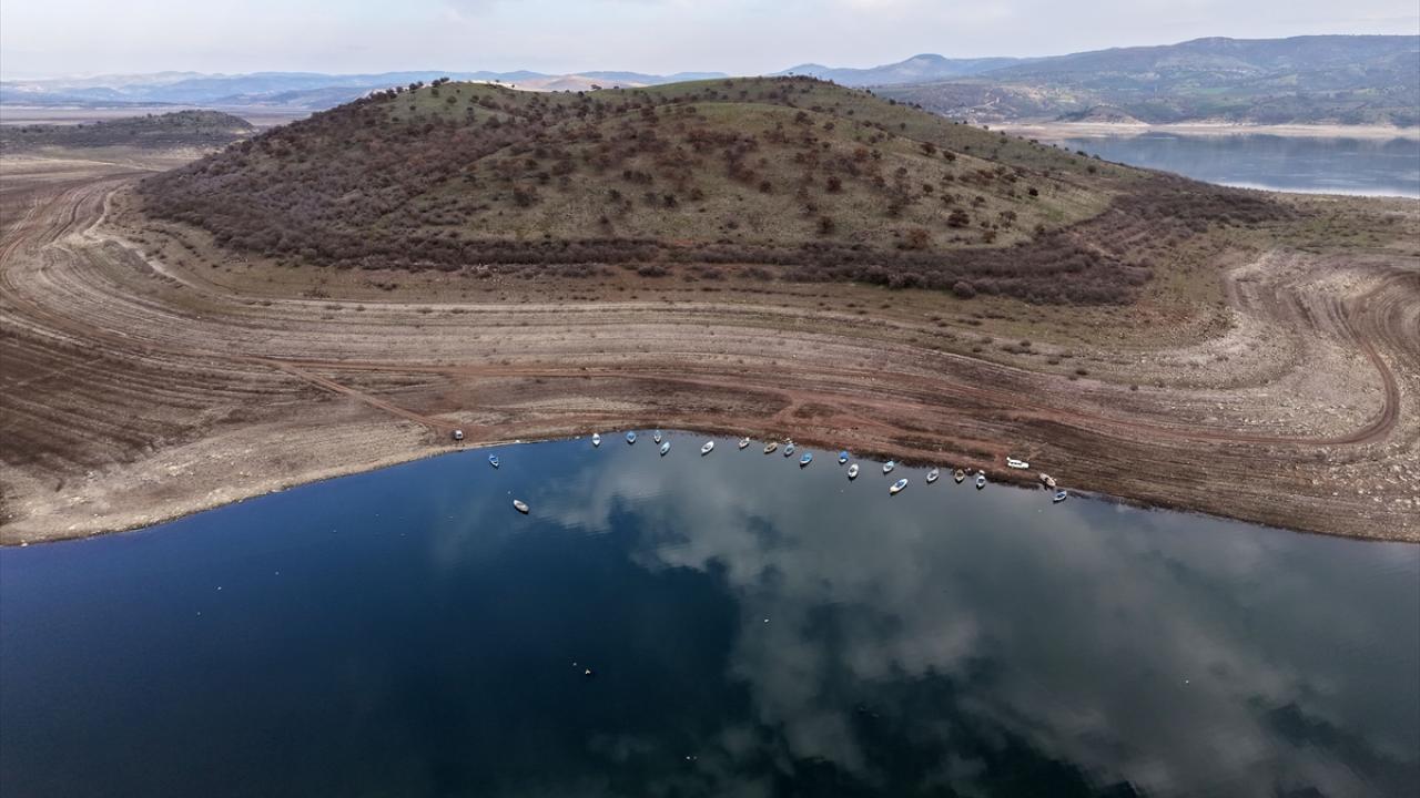 Yaşanan kuraklık ve tarımsal sulama nedeniyle debisi önemli ölçüde azalan barajda, su tutulan alanın metrelerce çekildiği gözlendi.