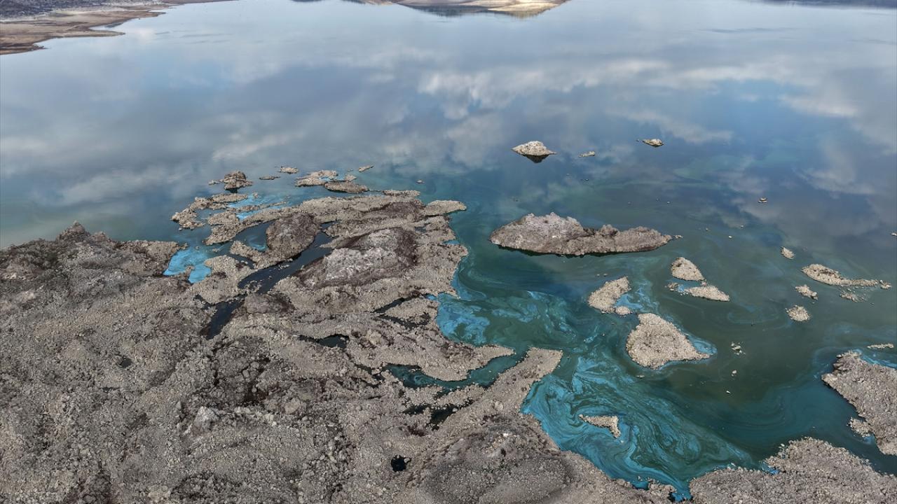 Suların çekilmesiyle baraj yüzeyinde yosun yoğunluğunun arttığı görüldü.