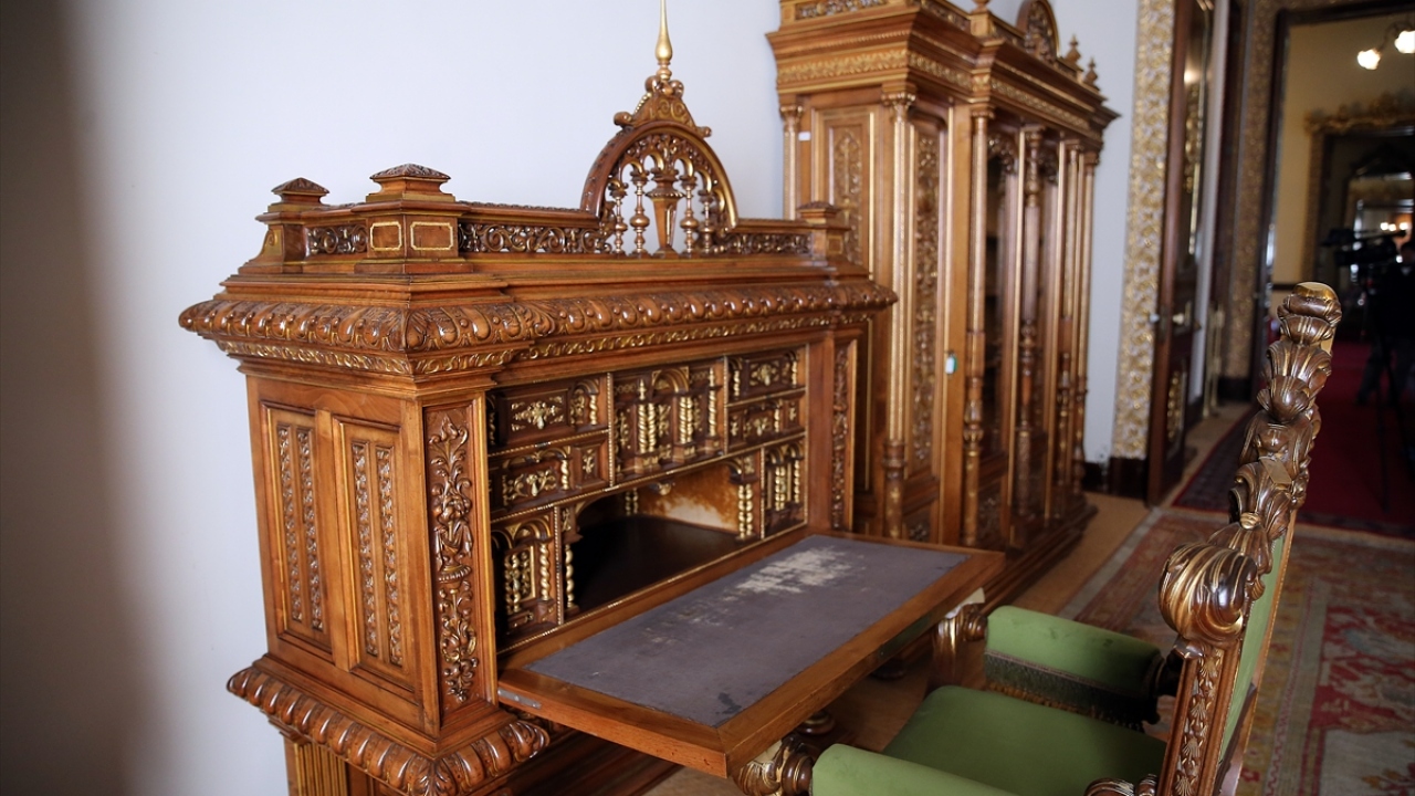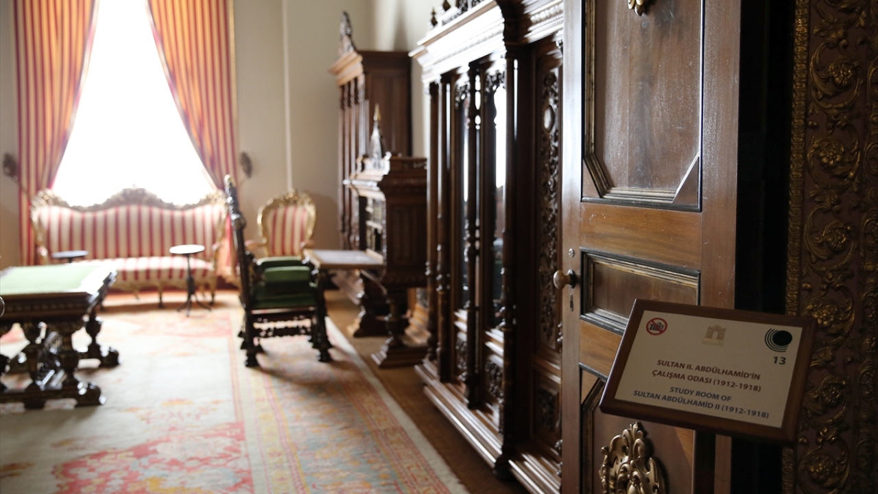 Fotoğrafta Sultan Abdülhamid Han`ın çalışma odası görülüyor.