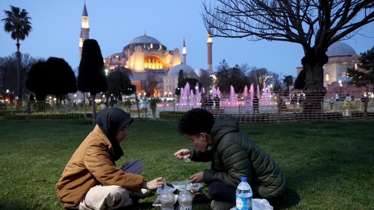 Top atışının ardından meydanda bulunan kişiler ilk iftarlarını yaptı. Sultanahmet Camii`nde ve Ayasofya-i Kebir Cami-i Şerifi`nde akşam namazlarını kılanlar, teravih namazını beklemeye başladı.