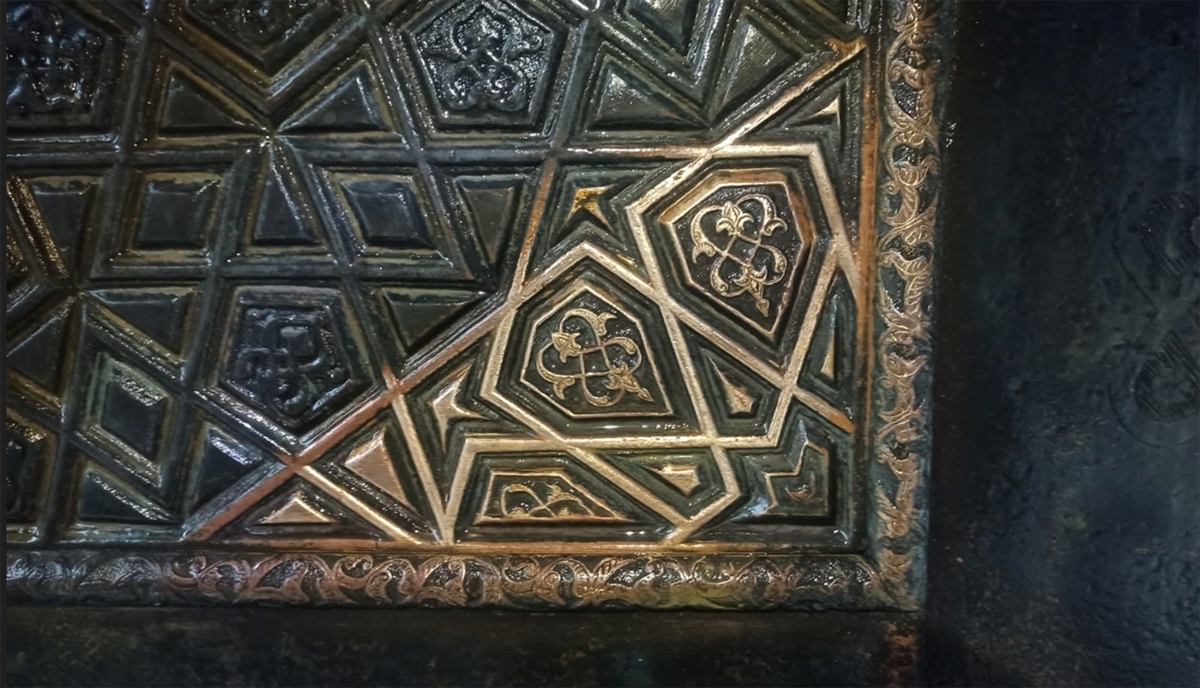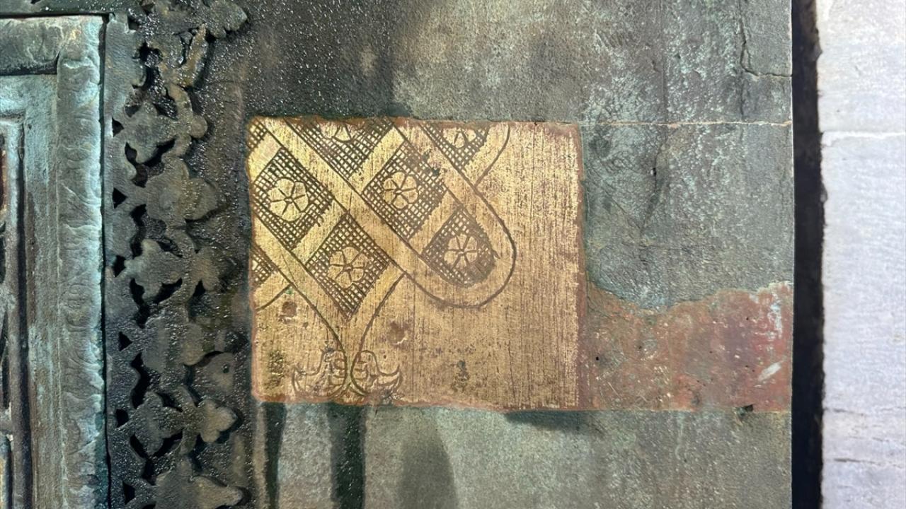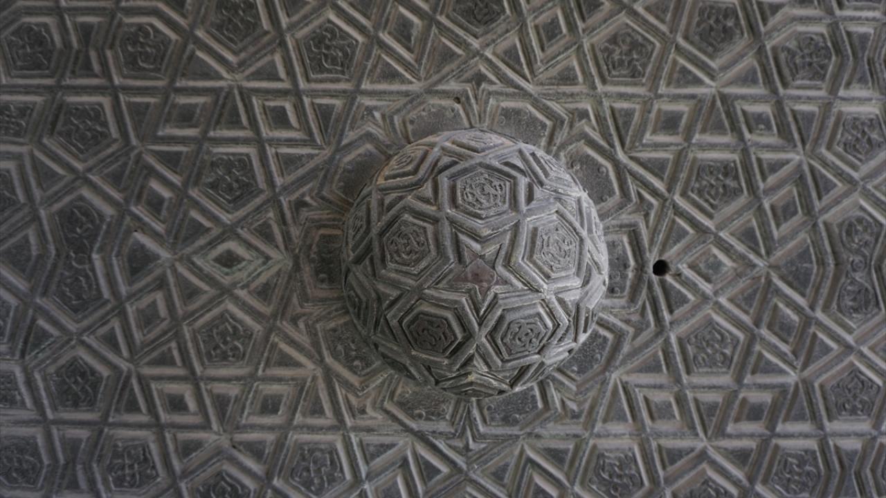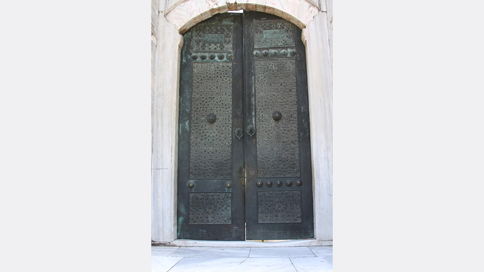 Ersoy, caminin revaklı avlusuna 3 yönden bronz kapılarla girildiğini, bu kapıların geometrik geçmeleri dışında, ajurlu demir menteşe klapalarının bile kazıma tekniğiyle işlendiğini, kapılarda rumi desenlere yer verildiğini aktardı.