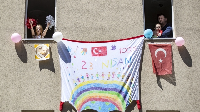 Çocuklar, 23 Nisan coşkusunu yaptıkları süslerle balkonlarına yansıttı