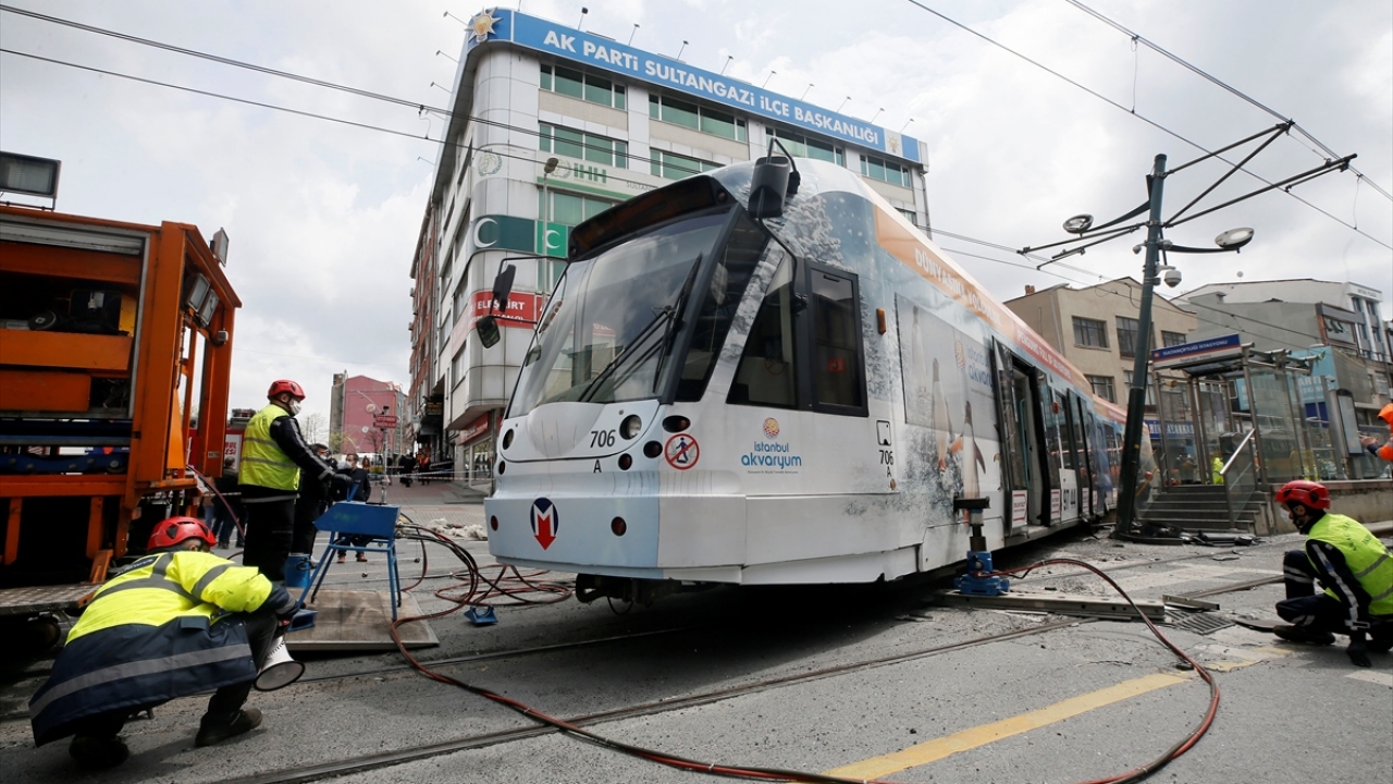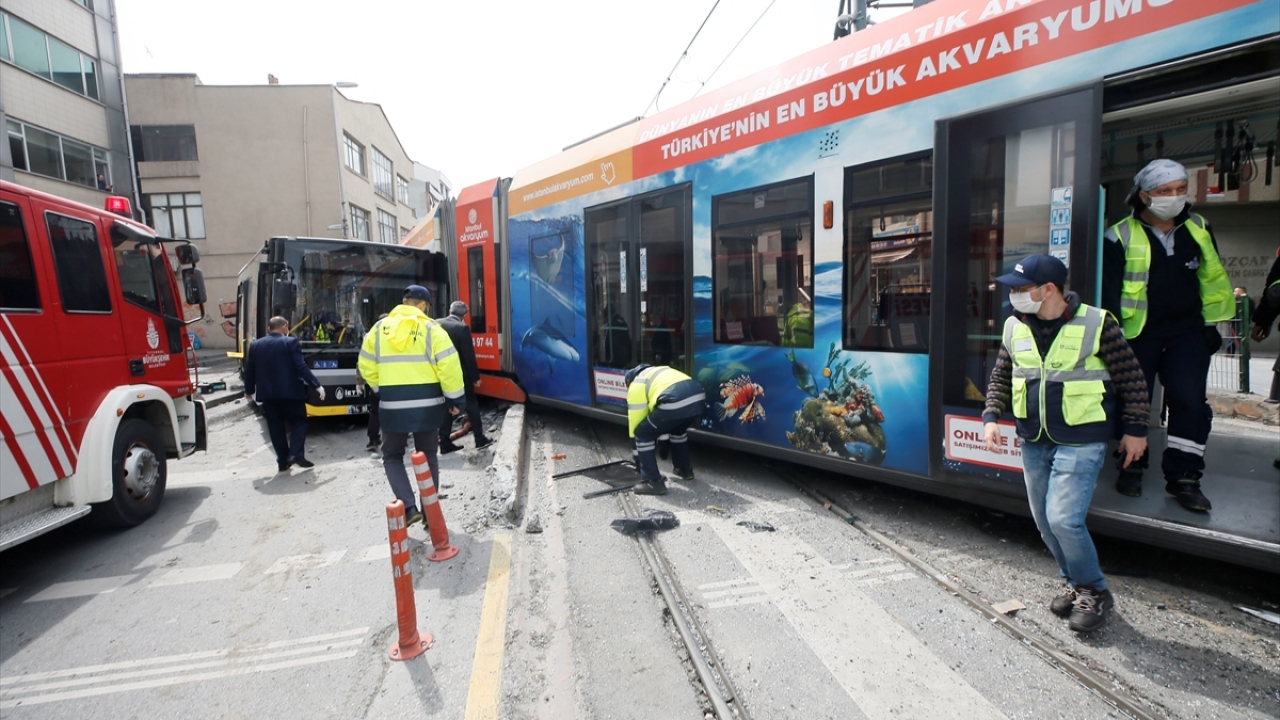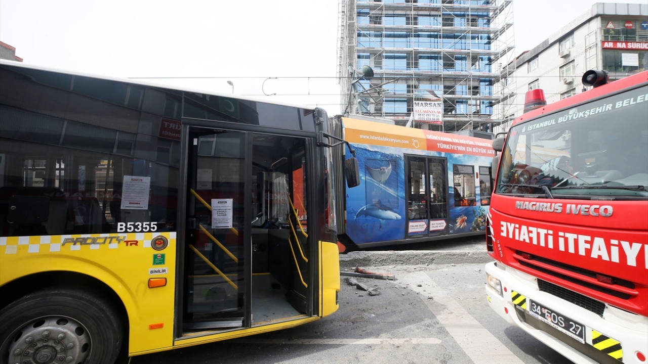 İstanbul Sultangazi'de tramvay ile otobüs çarpıştı. Çarpışmanın etkisiyle tramvay raydan çıktı.