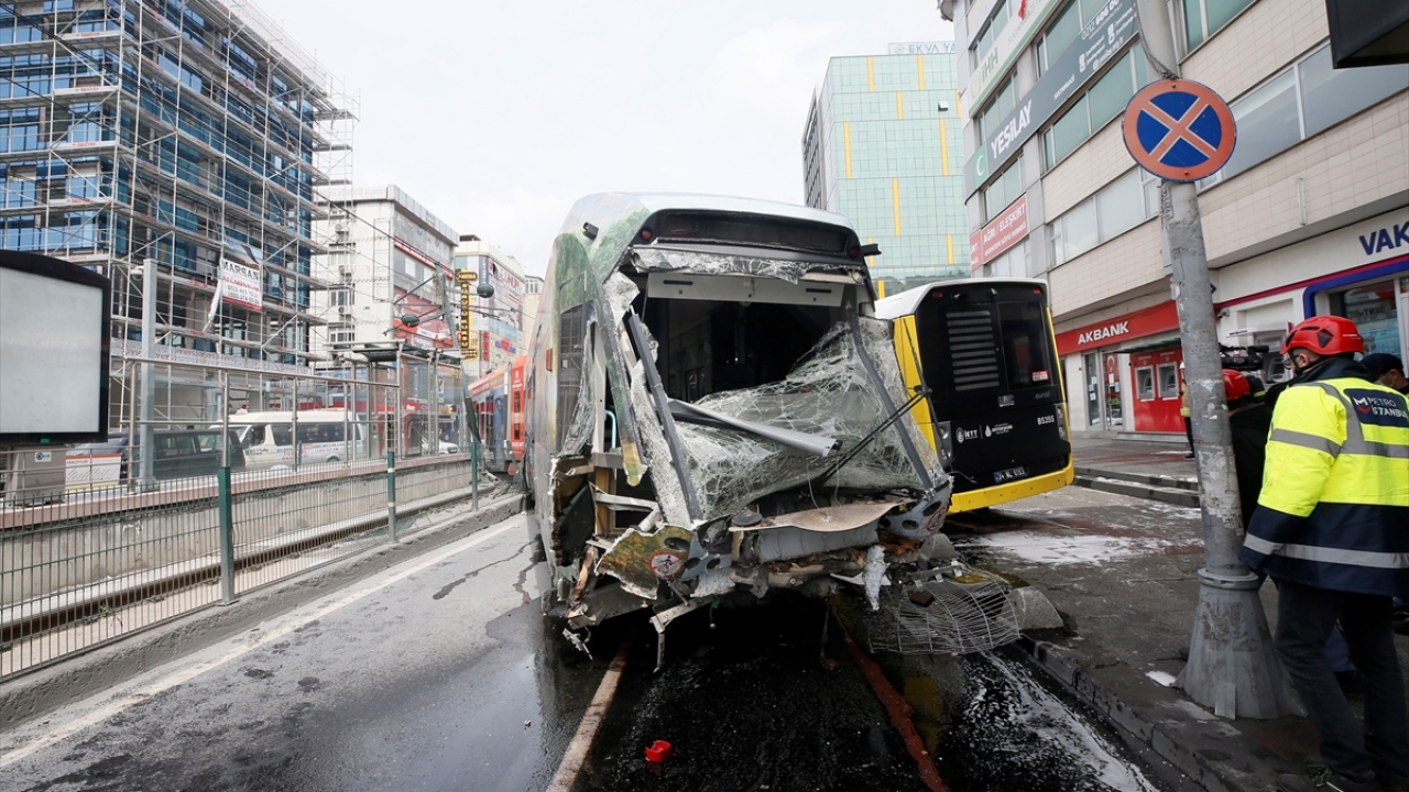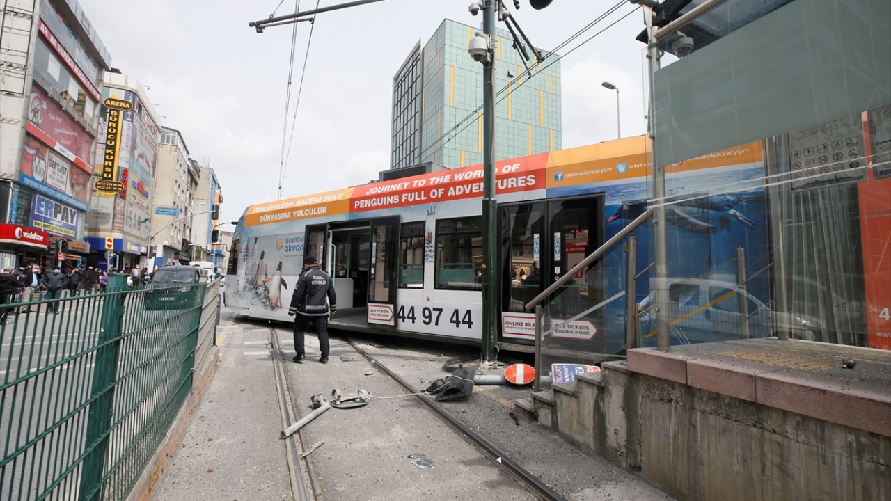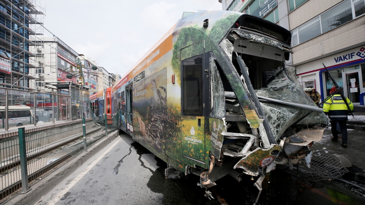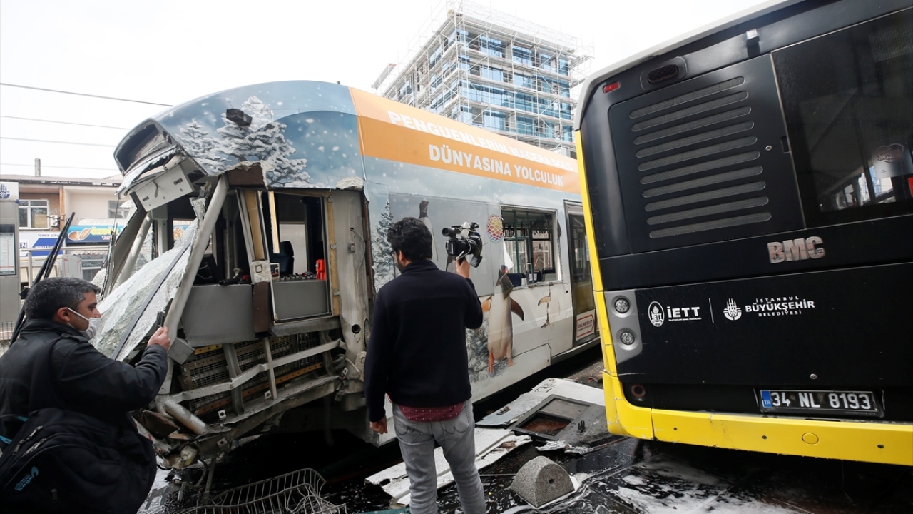 İstanbul Sultangazi'de tramvay ile otobüs çarpıştı. Çarpışmanın etkisiyle tramvay raydan çıktı.