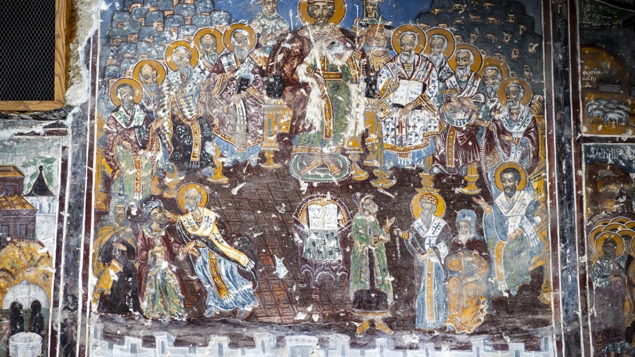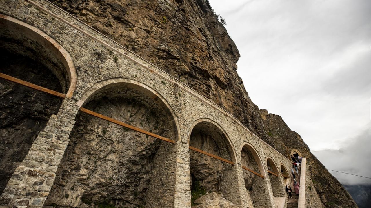 Kaya düşme riskine karşı bir süre önce kapatılarak restorasyona alınan tarihi manastırda, tehlike oluşturan kayalar çelik halatlarla sabitlenirken, kaya tutucu bariyerler inşa edildi.