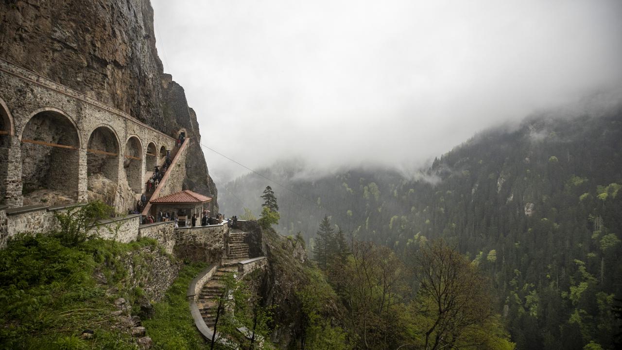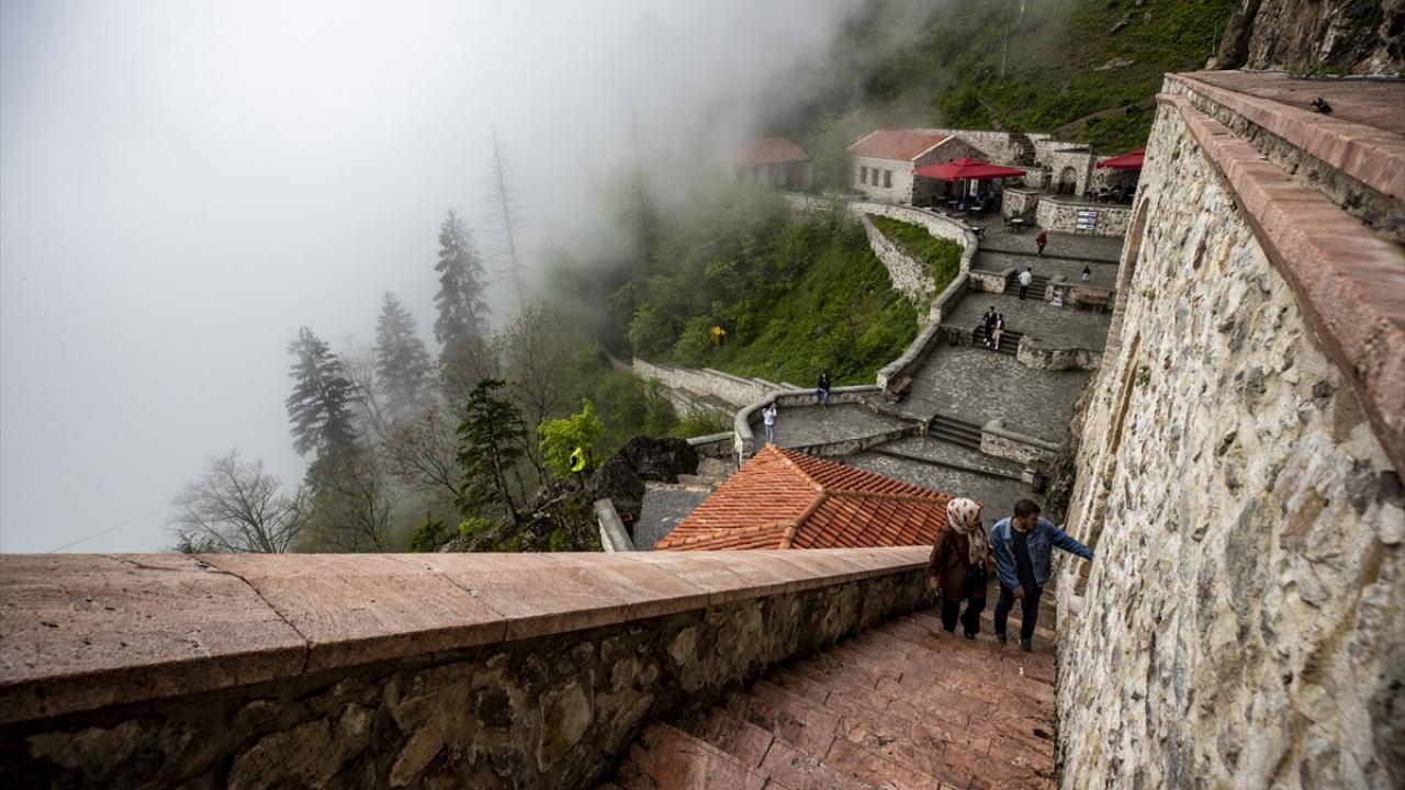 Bölgedeki tarih, kültür ve doğa turizmine önemli katkı sağlayan Sümela Manastırı, sisli ve yağmurlu havalarda da ziyaretçilerinden ilgi görüyor.