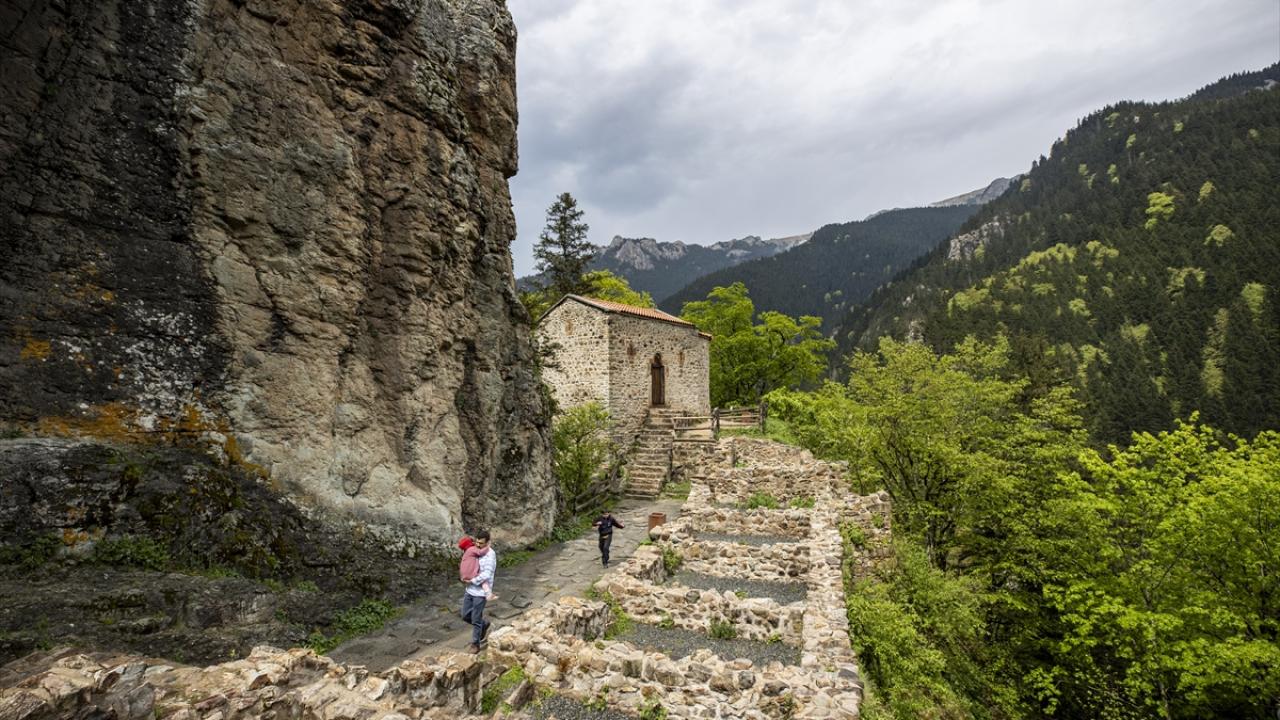 UNESCO Dünya Miras Geçici Listesi`ne 2000 yılında alınan tarihi Sümela Manastırı, baharın gelişiyle yeşilin binbir tonunu yansıtan manzarasının yanı sıra patika yolunda bulunan ve halk arasında "Azize Varvara" olarak bilinen "Aya Varvara Kilisesi"yle de dikkati çekiyor.