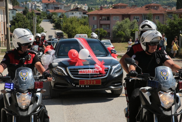 Sünnet olan şehit çocukları "kırmızı plakalı" araçla tur attı