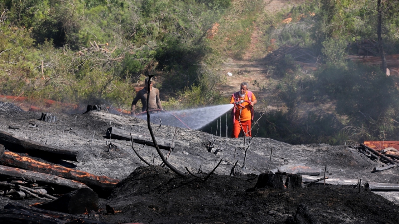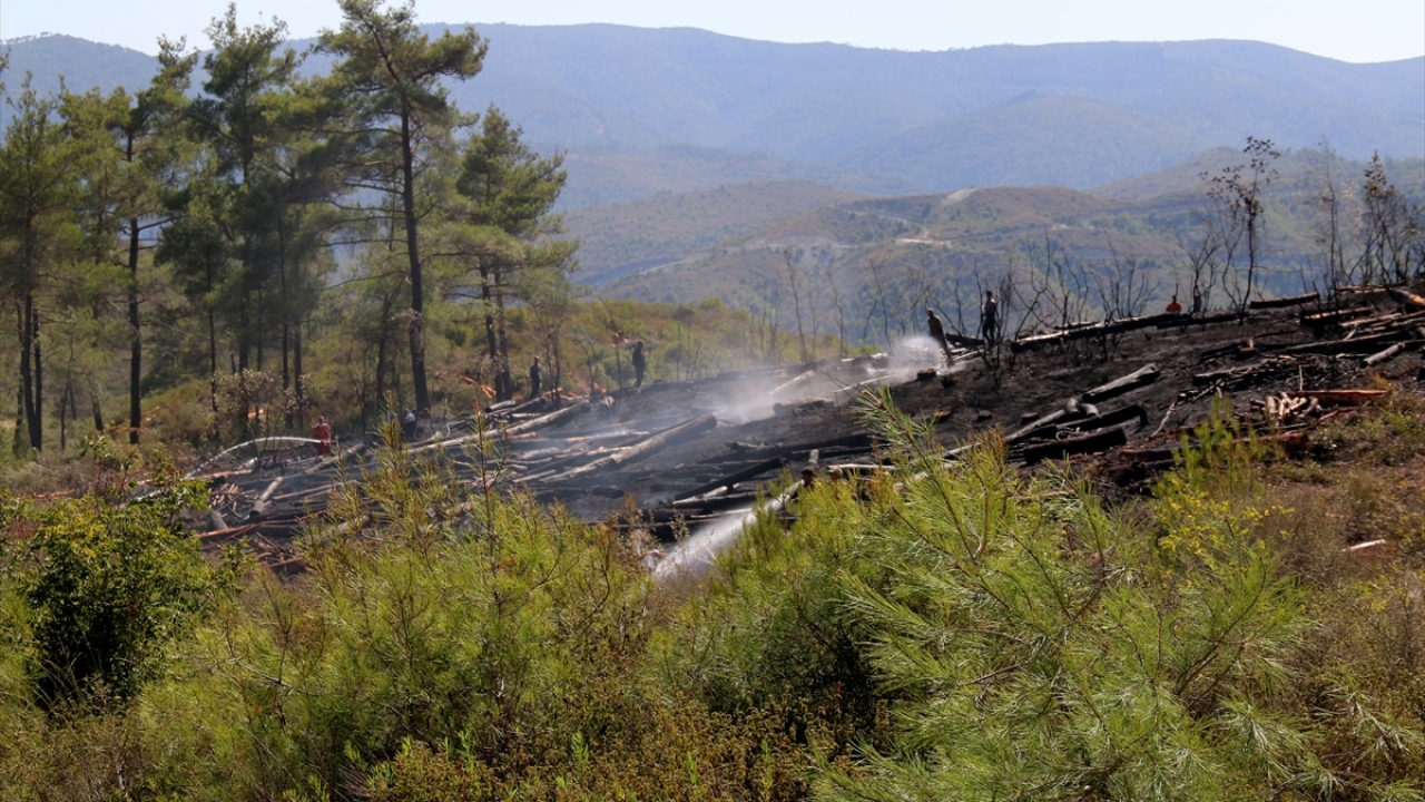 Yangında yaklaşık 3 dekarlık alan zarar görürken, başlatılan soğutma çalışmaları devam ediyor.