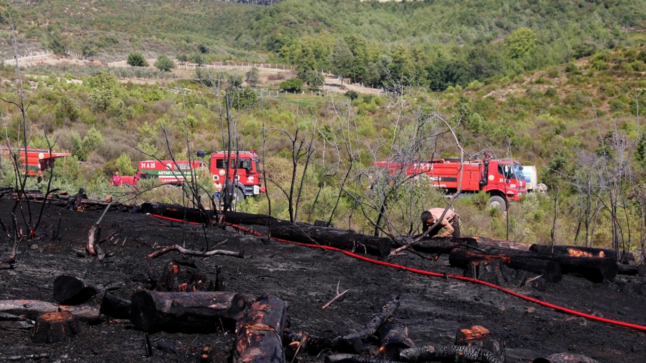 Altınözü`ne bağlı Karbeyaz Mahallesi Suriye sınırının sıfır noktasındaki ormanlık alanda da yangın çıktı.