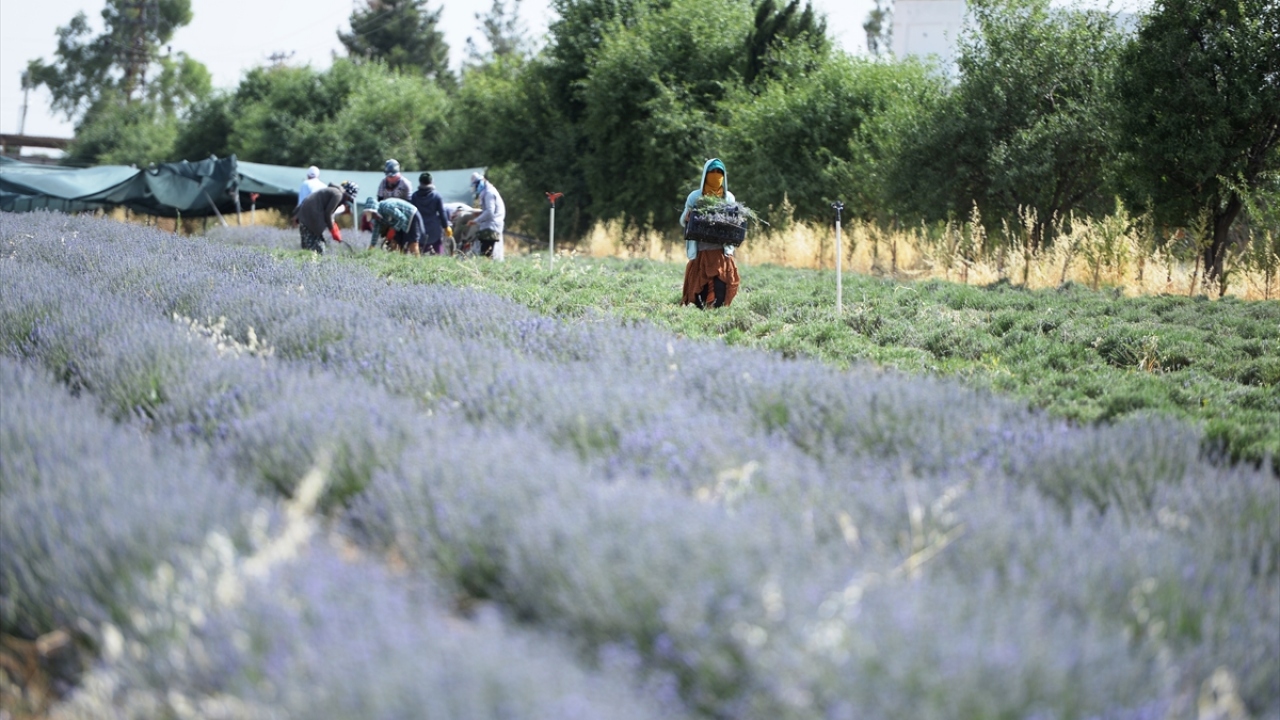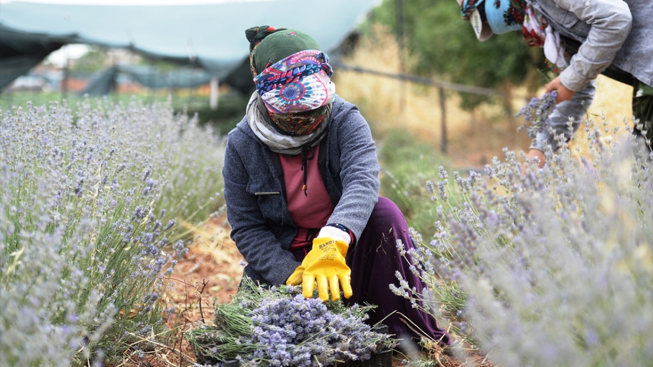 Yıldız ailesine ait arazide ekilen lavantalar, çoğunluğu kadın 32 Türk ile Suriyeli çiftçi tarafından toplandı.