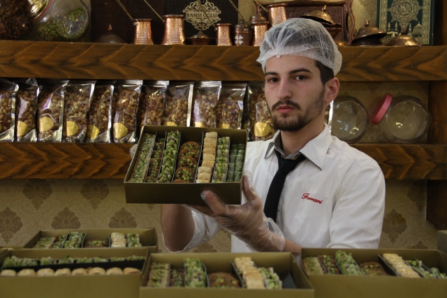 Ülkelerindeki iç savaştan kaçarak Gaziantep'te yaşamlarını sürdüren Suriyeli tatlıcılar, mesleklerini yaşatıyor. Suriye'nin Halep kentinden 3 yıl önce ailesiyle Gaziantep'e yerleşen Ahmed Hamdi, burada kardeşleriyle ürettikleri yöresel tatlıları, Ramazan Bayramı öncesi soydaşlarının beğenisine sunuyor.
