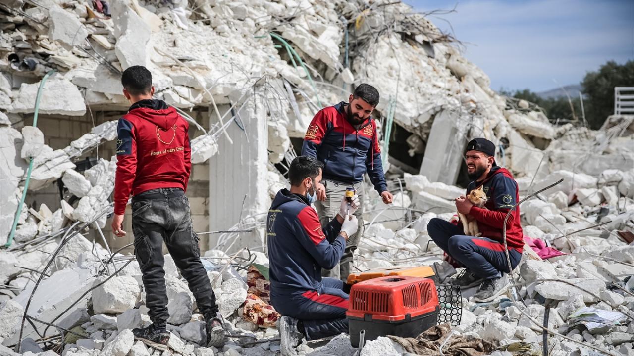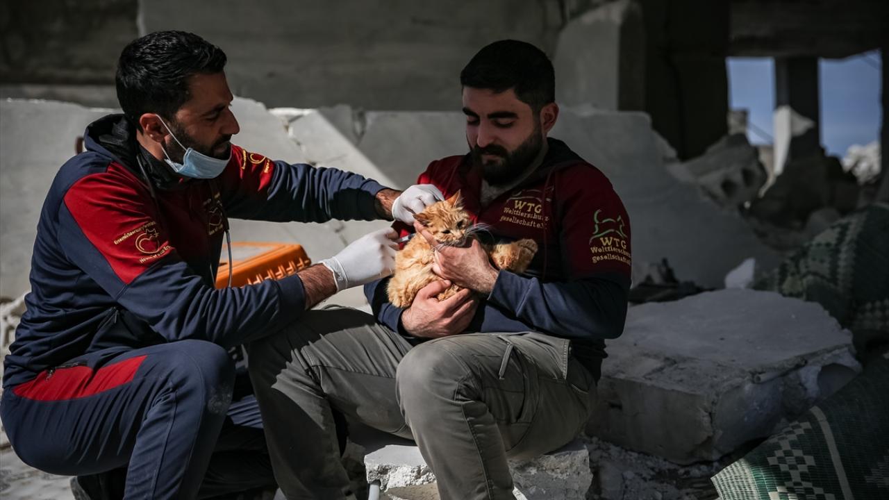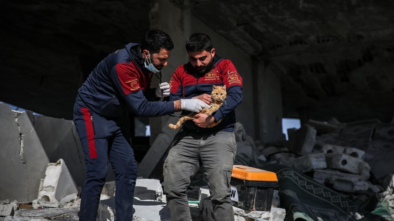 Halepli bir grup hayvansever, Suriye’nin kuzeybatısındaki İdlib ilinde Kahramanmaraş merkezli depremlerden etkilenen bölgelerde yaralanan onlarca kedi ve köpeği tedavi ediyor.