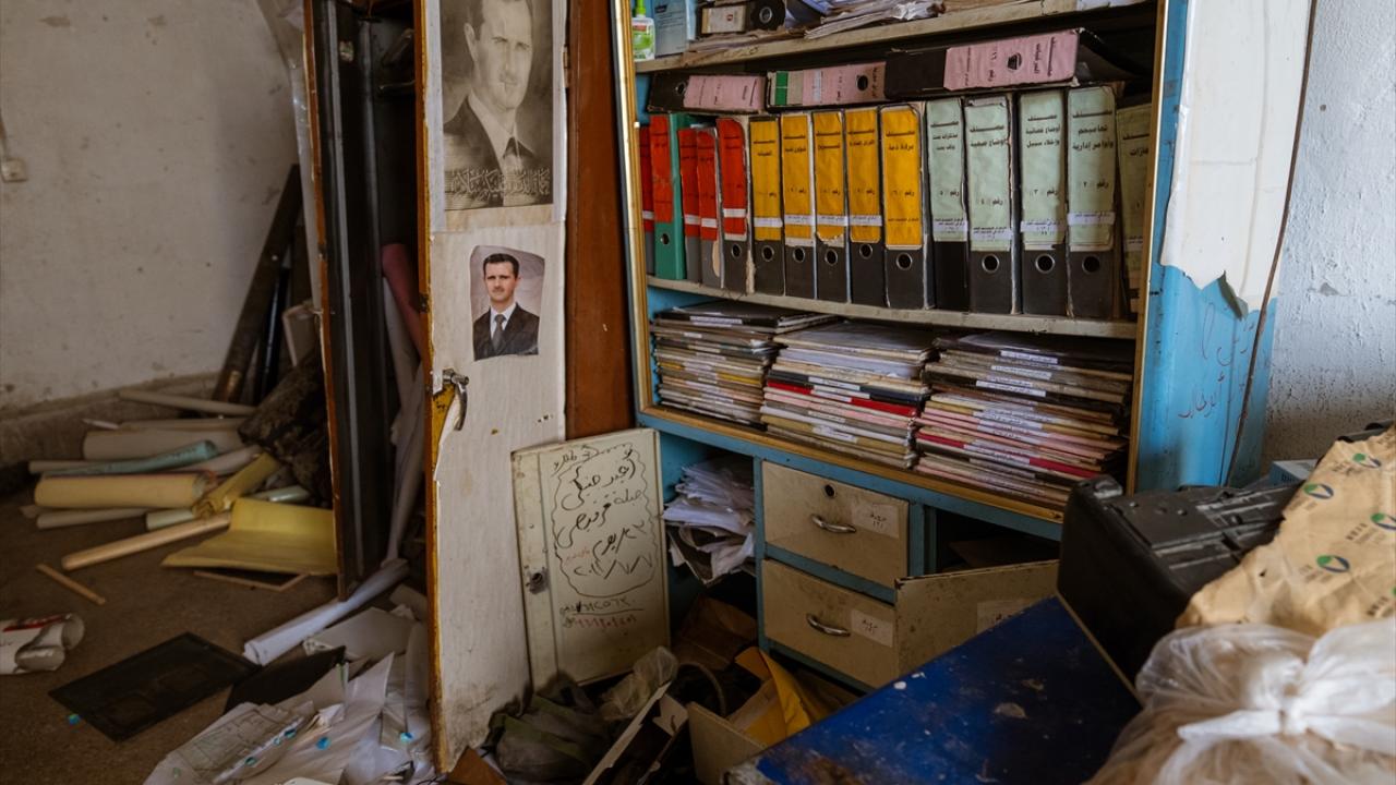 Duvarlara siyasi sloganların yazıldığı ve Esed ailesi üyelerinin resimlerinin çizildiği de görülüyor.