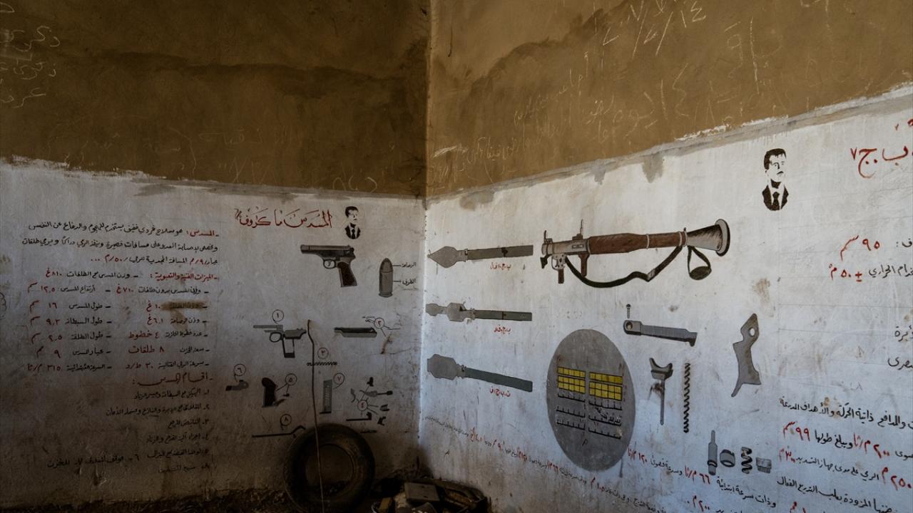 Makineli tüfek, el bombası, roketatar dahil mekanik teçhizatın bakım ve montajlarını duvar resimleriyle anlatan kroki çizimleri, rejim askerlerinin gördüğü saha eğitimlerini gün yüzüne çıkarıyor.