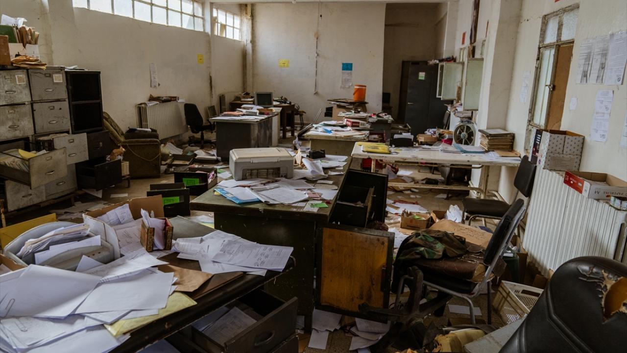 Varil bombası üretim tesisleri, mayın tarlaları, kimyevi madde tenekeleri, yanmış asker koğuşları, Esed rejiminin sivilleri hedef alan bombalarının kaynak materyallerini gözler önüne seriyor.