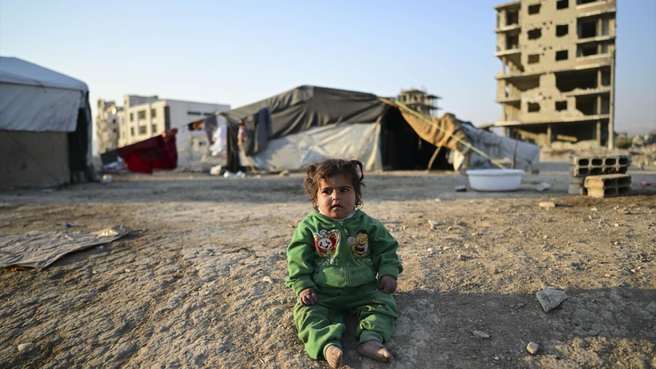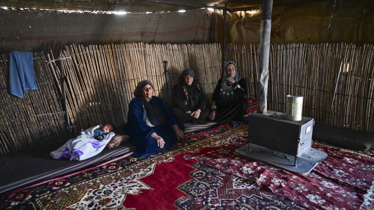 Suriye'de 61 yıllık kanlı Baas rejimi ve 53 yıllık Esed ailesi iktidarının devrilmesinden sonra hayat normale dönerken Suriye'nin başkenti Şam'a bağlı Zemelka mahallesinde evleri harabeye dönen aileler çadırda yaşamını sürdürüyor.