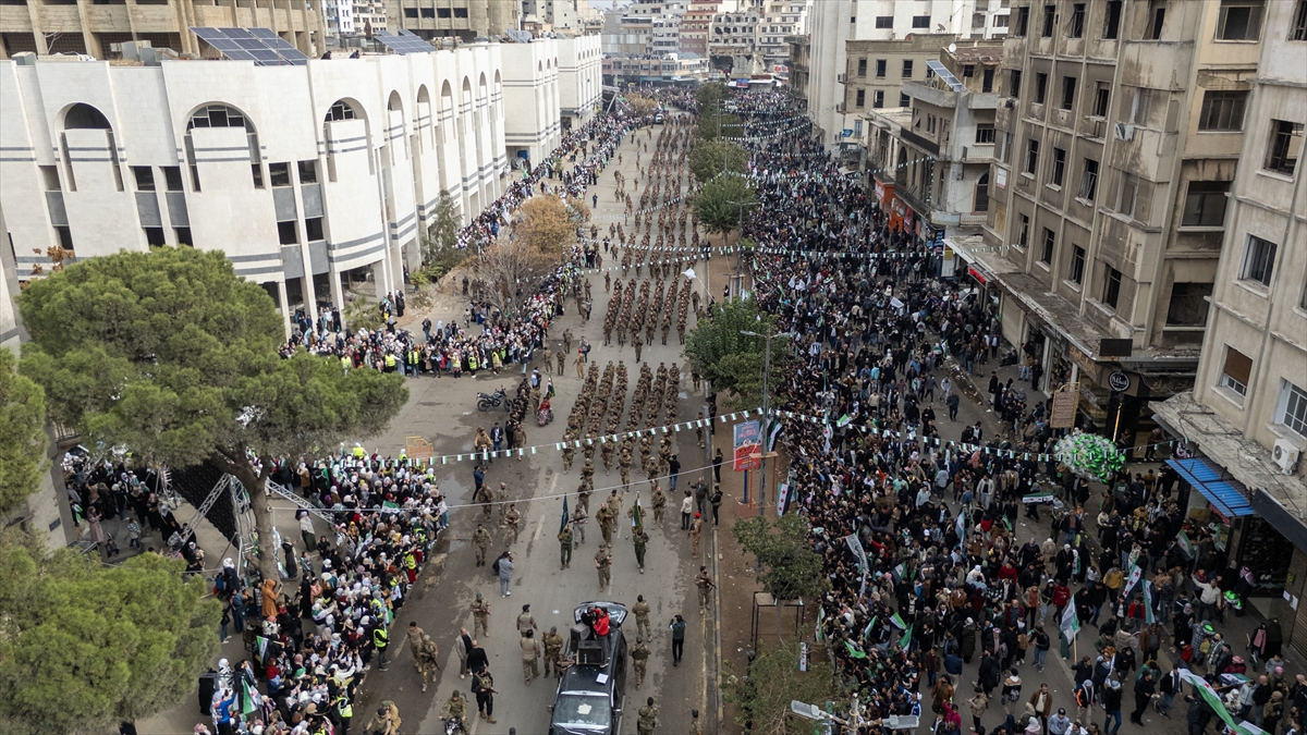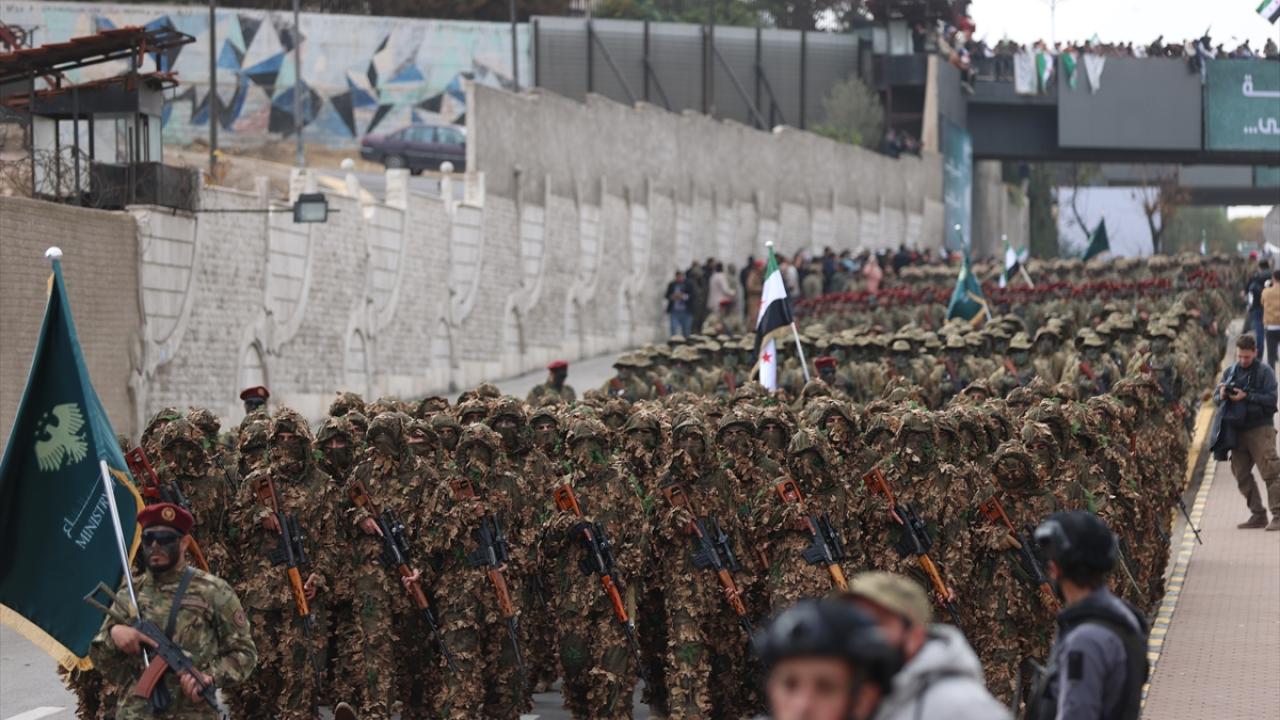 Suriye’de 61 yıllık Baas rejiminin devrilmesinin birinci yıl dönümü ülke genelinde kutlanıyor. Kutlamalar kapsamında askeri geçit töreni düzenlendi.