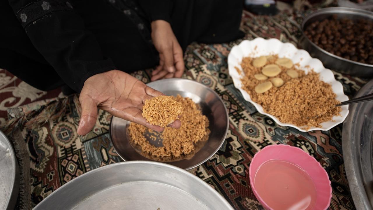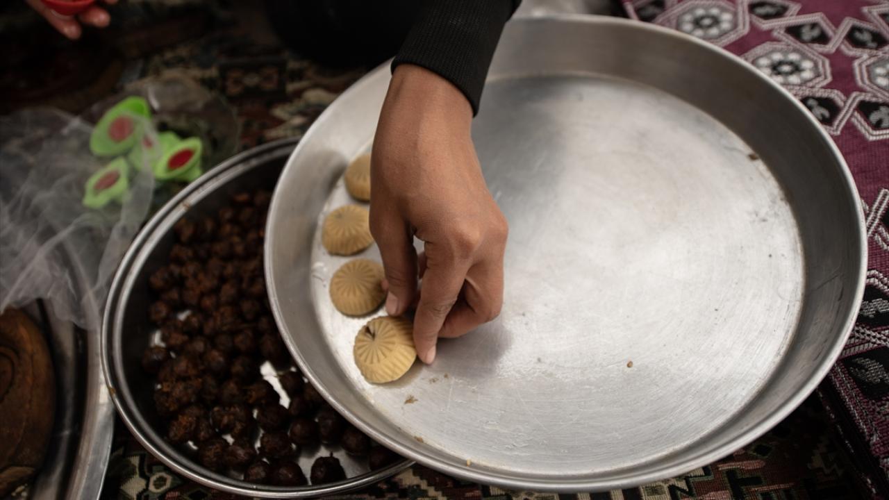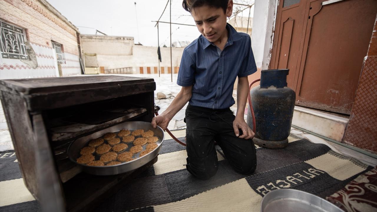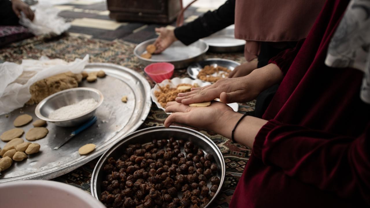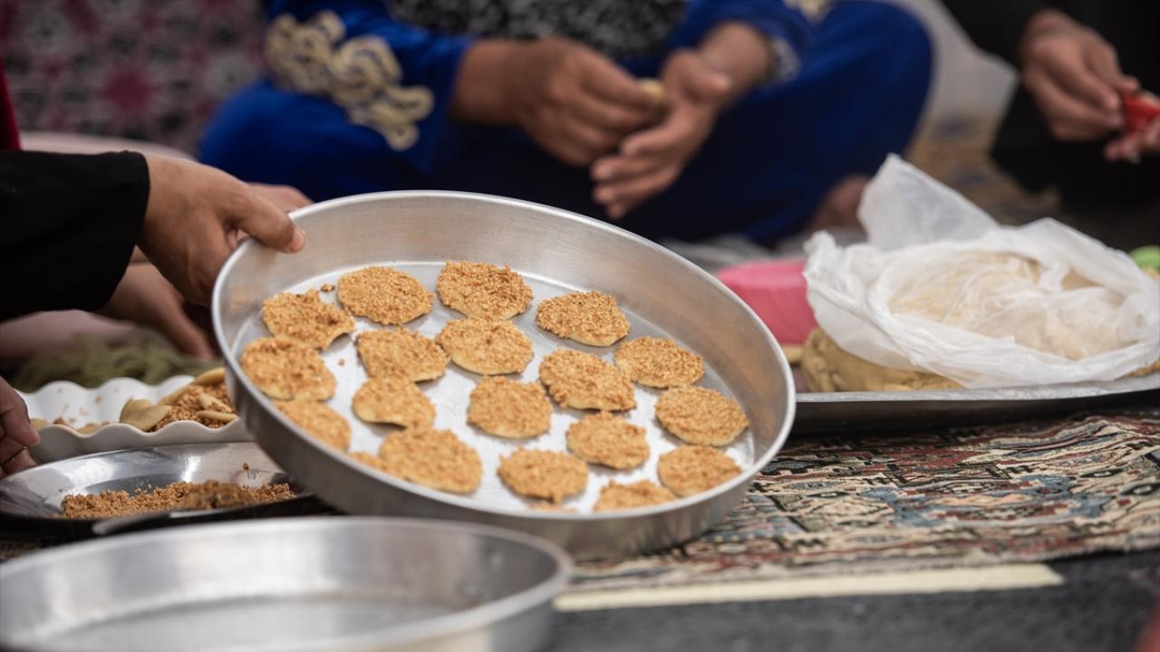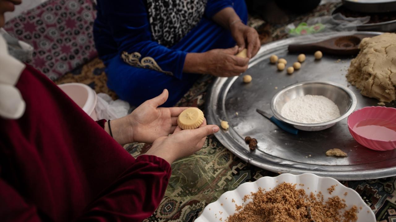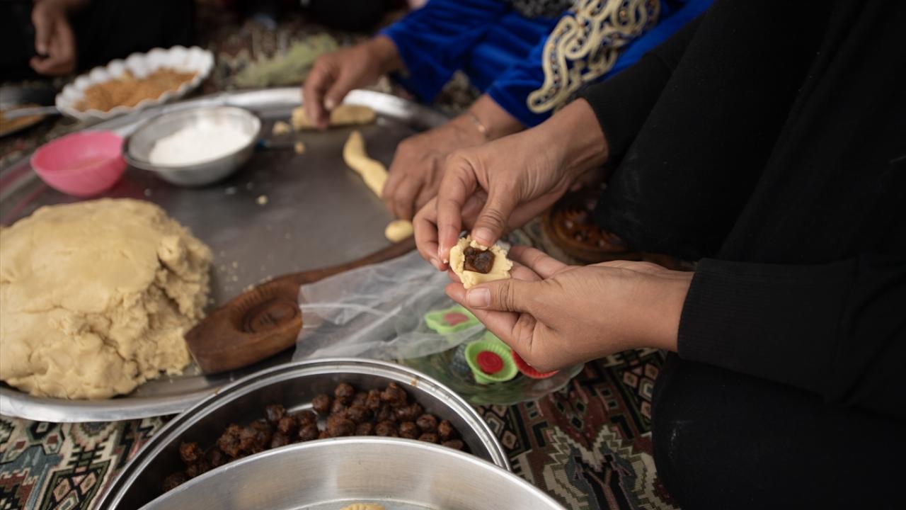 Suriye'nin Doğu Guta bölgesinde yaşayan Kuveyder ailesindeki kadınlar, ramazan bayramı hazırlıkları kapsamında geleneksel kurabiye ve tatlılar yapıyor.