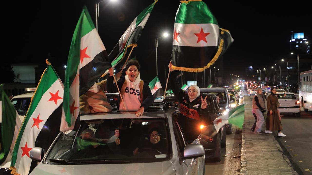 Suriye bayrakları açarak araçlarıyla caddelerde tur atan vatandaşlar, sevinç gösterilerinde bulundu.