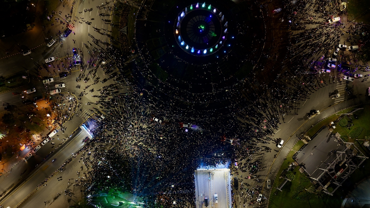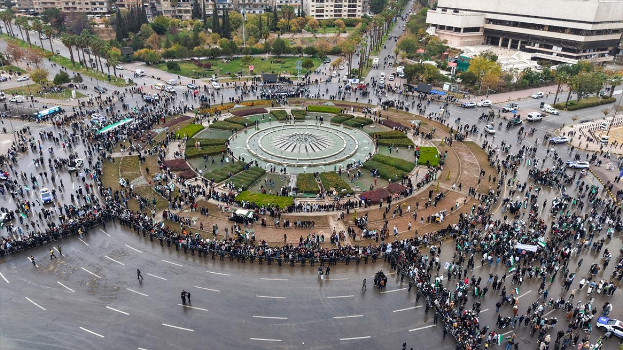 Suriye’nin başkenti Şam’daki Emevi Meydanı`nda toplanan yüzlerce kişi, 61 yıllık Baas rejiminin devrilmesinin birinci yıl dönümünü kutladı.