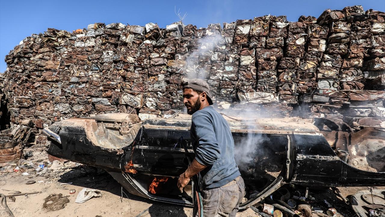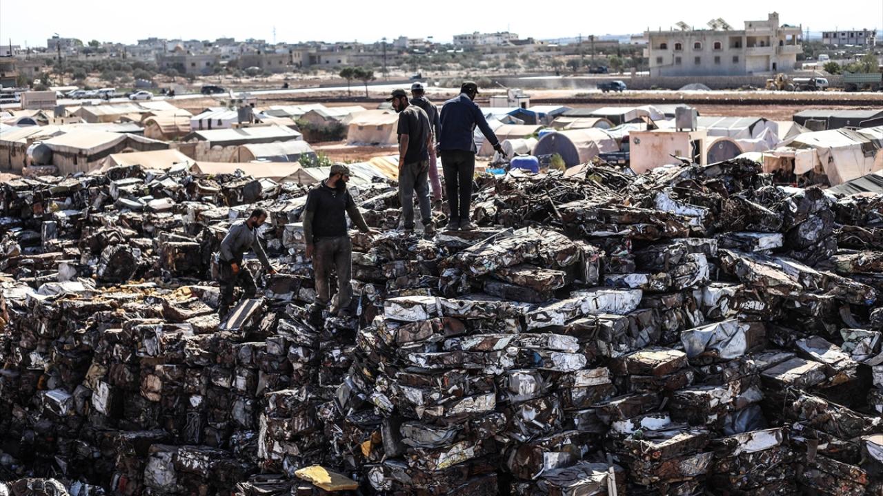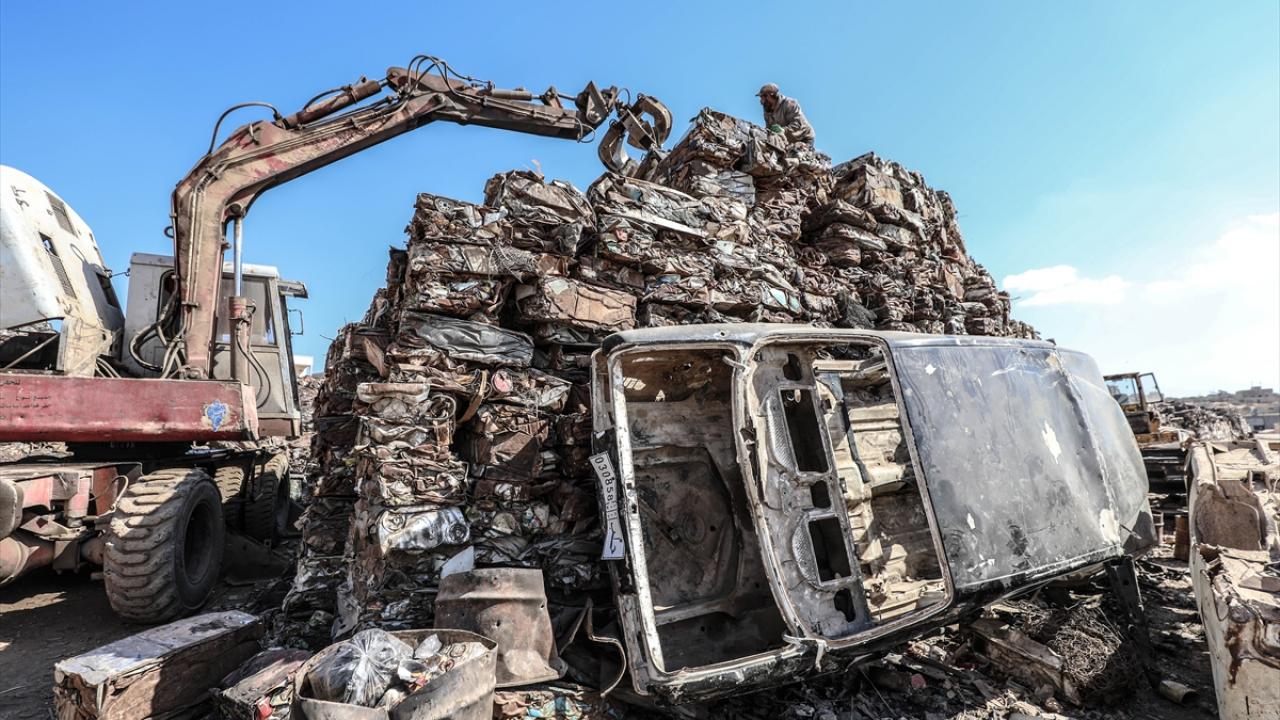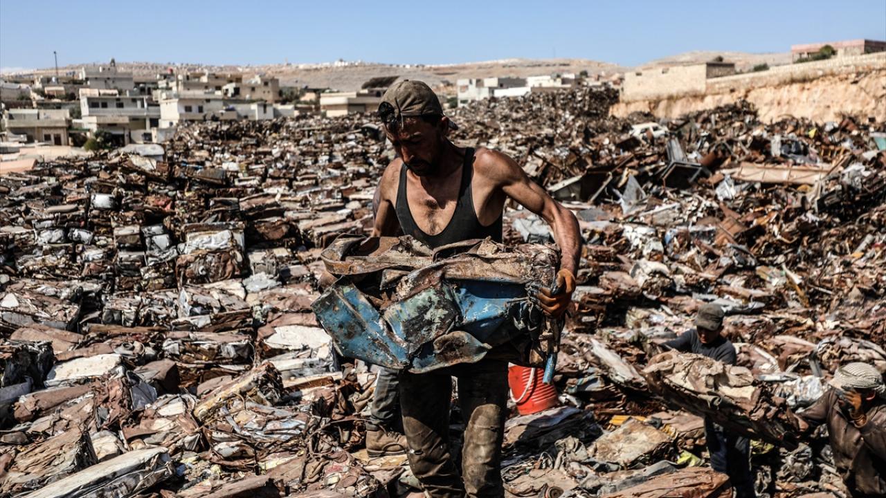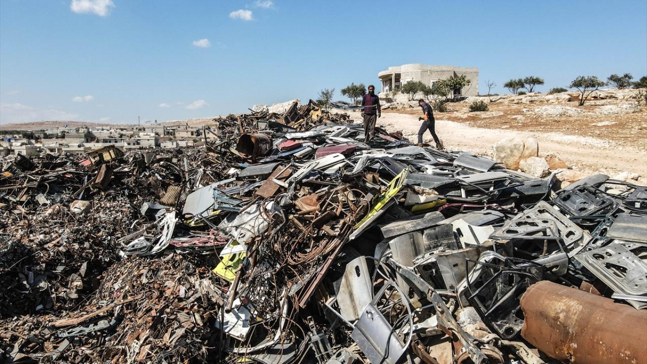 Suriye'de Beşşar Esed rejimi ve destekçilerinin saldırılarında enkaza dönen yerleşimlerden toplanan hurdalar, Halep ilinin kırsalındaki bir merkezde ekonomiye kazandırılmaya çalışılıyor.